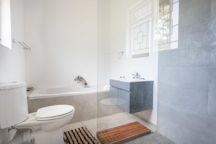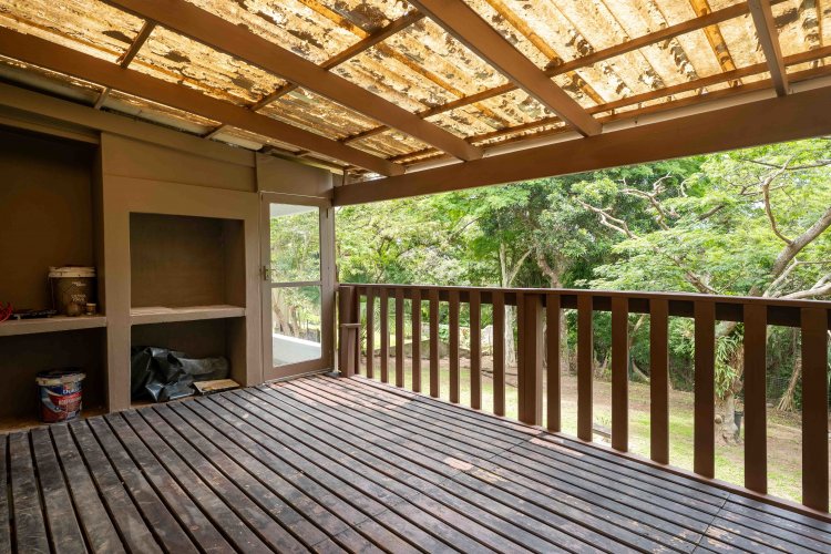 This newly renovated home in Pennington is move-in ready and thoughtfully designed for comfortable family living. Secure access is provided via a single garage and single carport, with direct entry into the house. Upon entering, there is a versatile room ideal for a study, home office, or potential bedroom. The home opens into a modern open-plan living area that flows seamlessly into the upgraded kitchen and a previously enclosed balcony fitted with sliding windows. The balcony extends onto a deck with a built-in braai, perfect for relaxed family gatherings. A wide passage with ample cupboards leads to a family bathroom, a double bedroom, and a main bedroom with a full en-suite. The modernised kitchen is well equipped, and a gas geyser ensures instant hot water. From the balcony, steps lead down to a spacious garden, additional storage and a room beneath the house, as well as staff quarters with an outside toilet.
