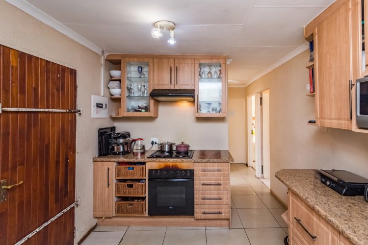 Fully fitted kitchen – with stove, oven, and hob; tiled from floor to wall