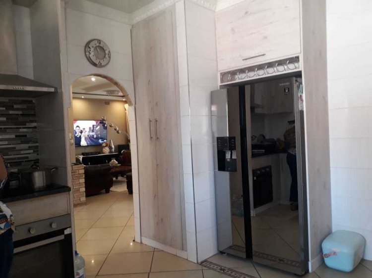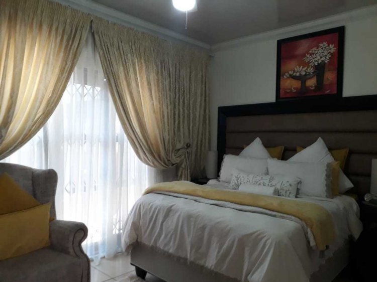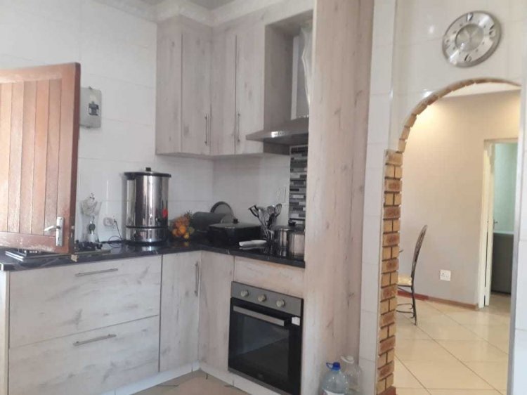 Nestled in a peaceful neighborhood, this charming 3-bedroom home offers comfort and versatility. The main house features a spacious master bedroom with an en-suite bathroom, complemented by two additional bedrooms and a shared bathroom. A welcoming lounge flows into a cozy dining area, perfect for family meals and entertaining guests. The kitchen is well-appointed, offering ample space for culinary creativity. Step outside to a private patio, ideal for relaxing or hosting gatherings. A single carport provides secure parking, while the domestic accommodation adds convenience for live-in help or extra storage. At the rear of the property, five additional bedrooms offer endless possibilities—ideal for extended family, rental income, or guest lodging. This unique layout combines privacy with functionality, making it a perfect fit for growing families or savvy investors.