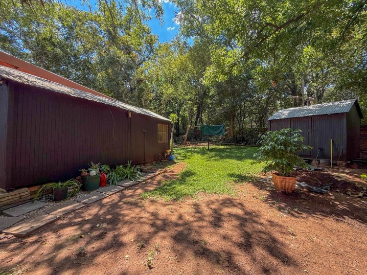 One section of the home can be adapted into a private en-suite cottage or self-contained unit — ideal for rental income, consulting rooms or executive office suites. Two Wendy houses provide additional storage or workspace, while a double garage and double carport ensure ample parking capacity for staff or visitors. Backup water tanks further enhance the property’s operational practicality.