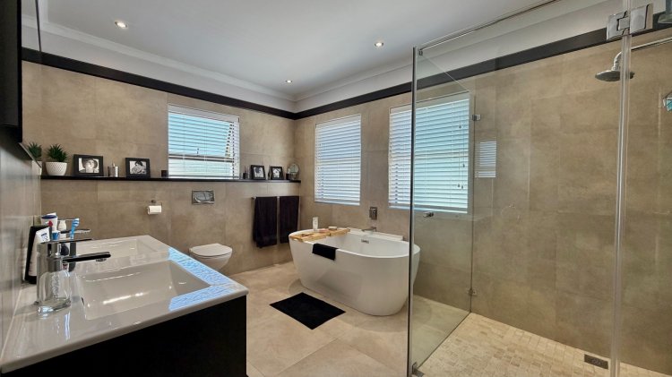 Additional features include a double garage, dual access for added convenience, and a solar panel system with inverter ensuring uninterrupted power and energy efficiency. Located in one of Somerset West’s most exclusive estates, this home offers not only refined living but also peace of mind in a secure, beautifully maintained environment — an exceptional opportunity for the discerning family.