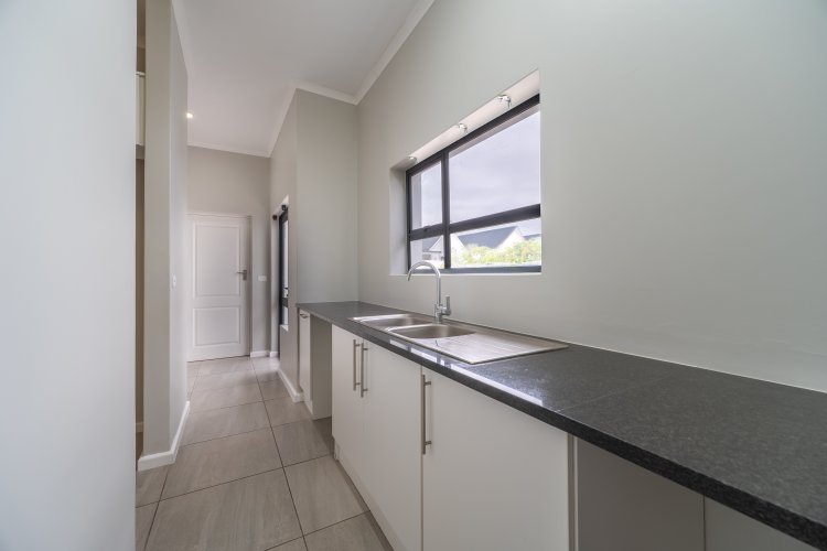 The kitchen is both practical and well-finished, with granite countertops, quality fittings, and a large separate scullery offering ample space for storage, laundry, and appliances. A double garage with direct access into the home adds further convenience.