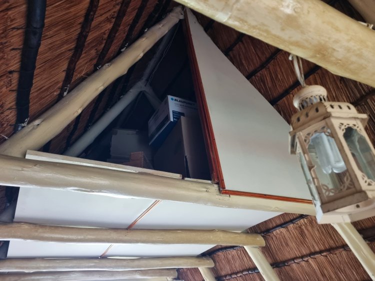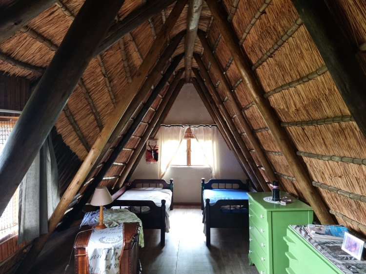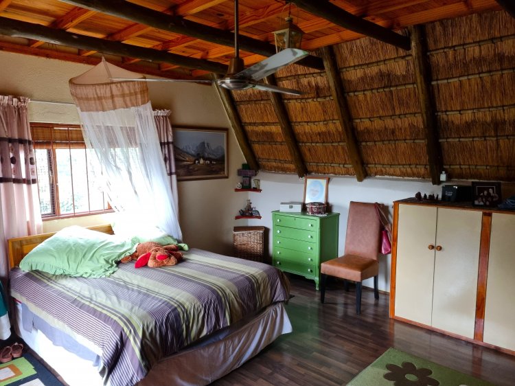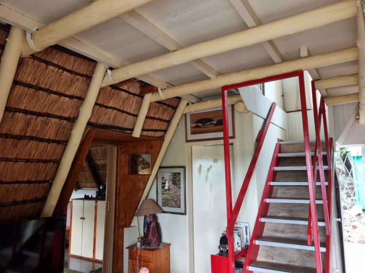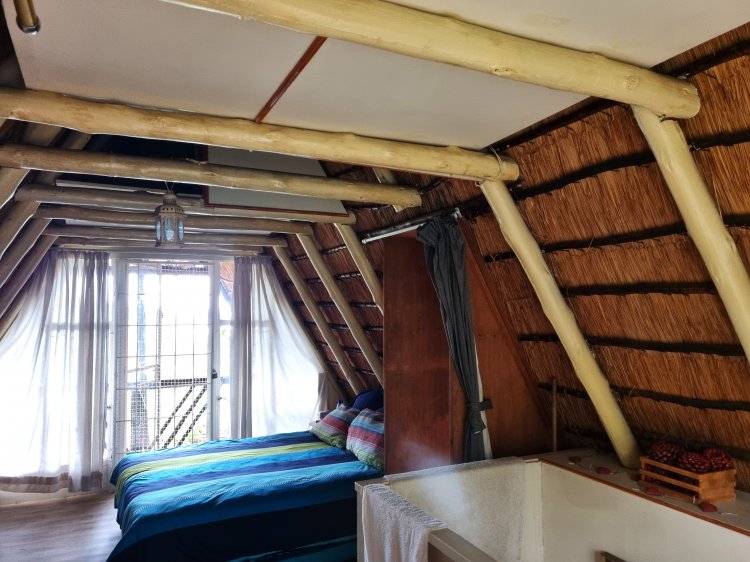 Welcoming open-plan kitchen, lounge, and dining area, perfect for family living and entertaining 1 bathroom plus a refreshing outdoor shower for a true nature-inspired experience Upstairs balcony leading from two bedrooms, with serene water and mountain vistas Clever storage with a shed, garden equipment room, and two additional rooms neatly tucked away in the ceiling Fully equipped with gas stove, gas geyser, and strategically placed security sensors 4 solar panels, inverter, and batteries for energy-efficient, stress-free living