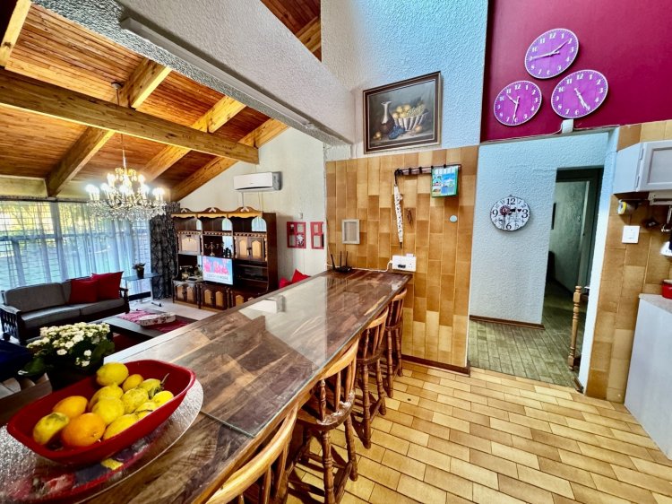 -3 Generously sized bedrooms with elegant wooden cupboards. -2 Full bathrooms — the main en suite and a modernised guest bathroom. -Dedicated study or home office. -2 Comfortable lounge areas, ideal for family living and entertaining. -Dining room seamlessly connected to the kitchen. -Enclosed stoep with sliding doors, adding extra living space. -Covered parking for multiple vehicles. -Double garage converted into a self-contained apartment with kitchen, bedroom, and bathroom — perfect for guests or rental income Beautiful, established garden with a small swimming pool and braai area.