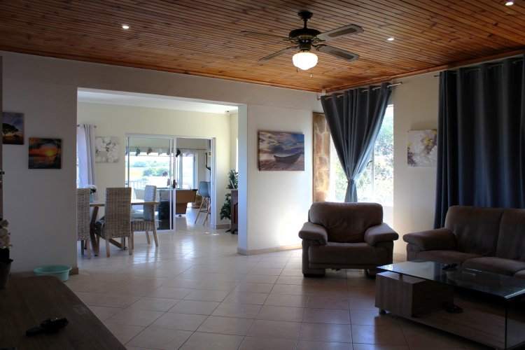 Perfectly tailored for the golfing enthusiast who loves to entertain, this home offers unbeatable views across the golf course, where wildlife roams freely among the fairways. Step inside and discover an open plan layout designed for effortless entertaining. The lounge, dining area, and entertainment space flow seamlessly onto a wooden deck with the golf course as your backdrop. The modern kitchen, fitted with granite countertops, opens onto a private back courtyard. Accommodation includes two bedrooms, both with magnificent golf course views. The main bedroom features an en-suite bathroom, while a second bathroom serves the guest room. An added bonus is a private one bedroom flat, complete with its own lounge, kitchenette, and balcony overlooking the course, perfect for visiting family or generating extra income as an Airbnb. Additional features elevate this home even further: • Double garage with workshop space • Separate study • Golf cart garage • Solar panels with 5kw inverter system • 30 000liter underground water tank plumbed into the home This home offers an unmatched lifestyle of leisure and opportunity, waiting for its new owners to make it their own.