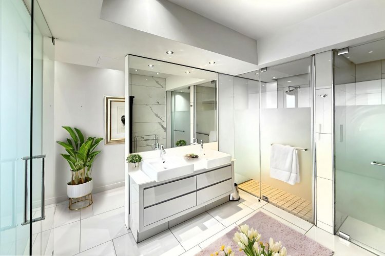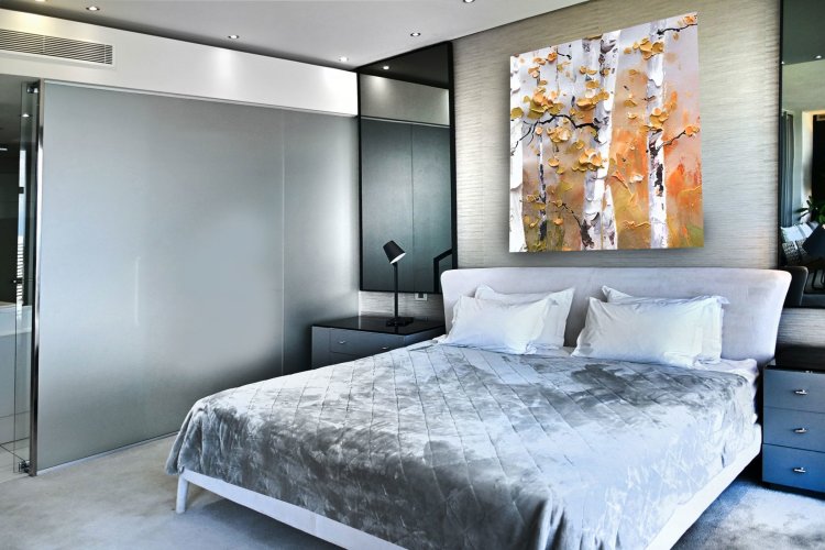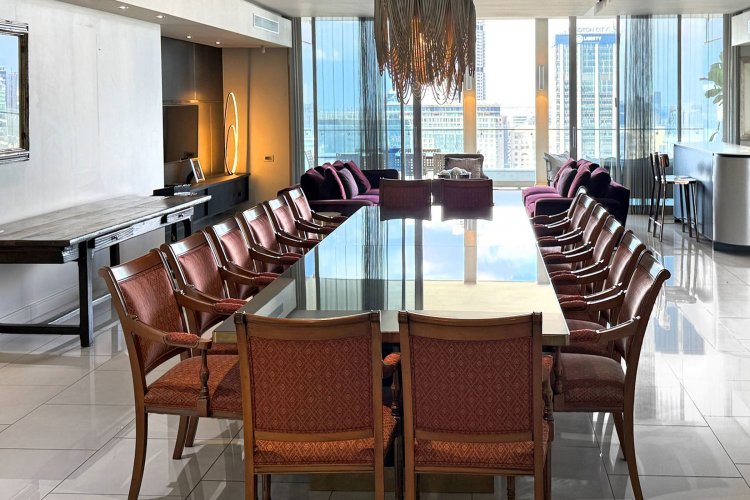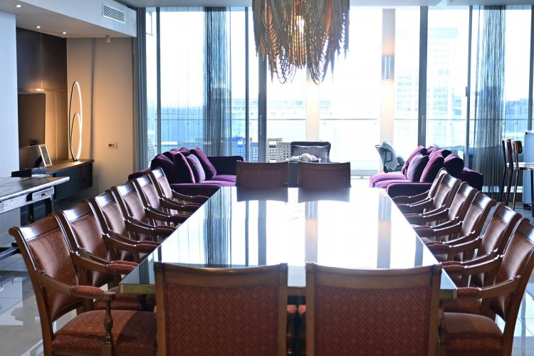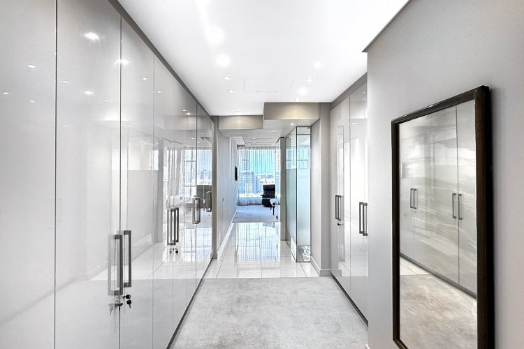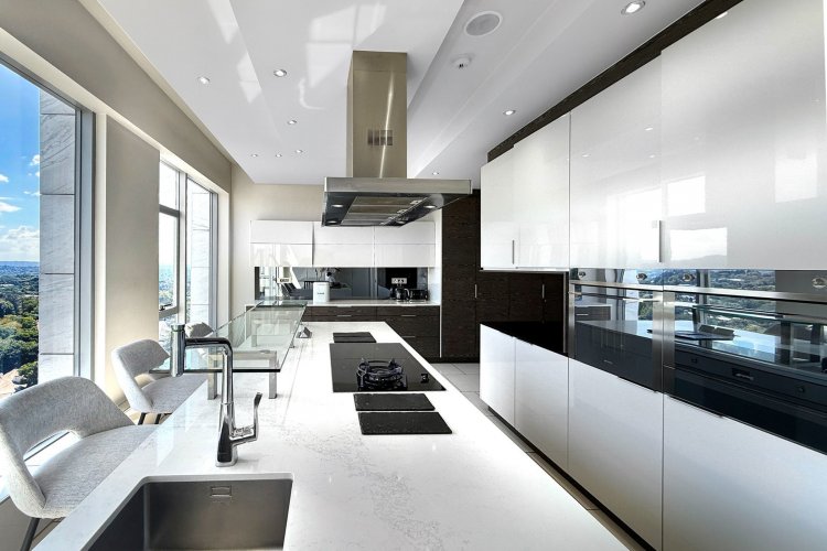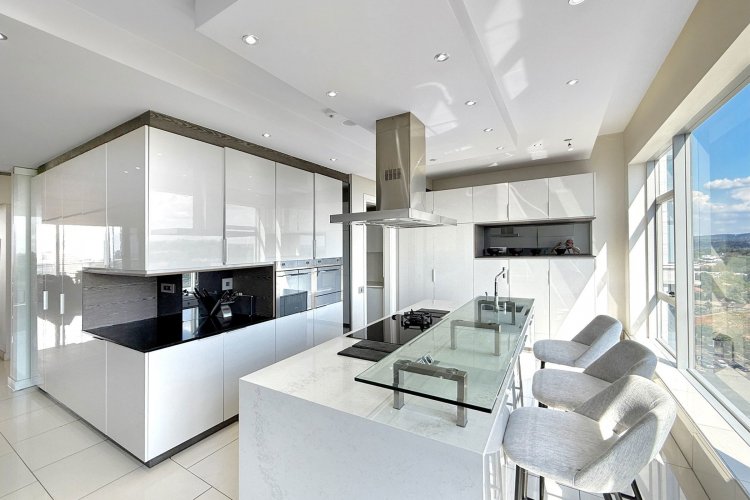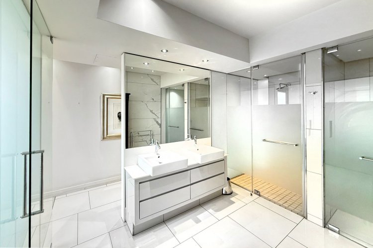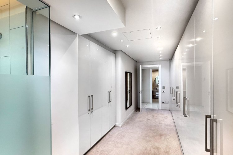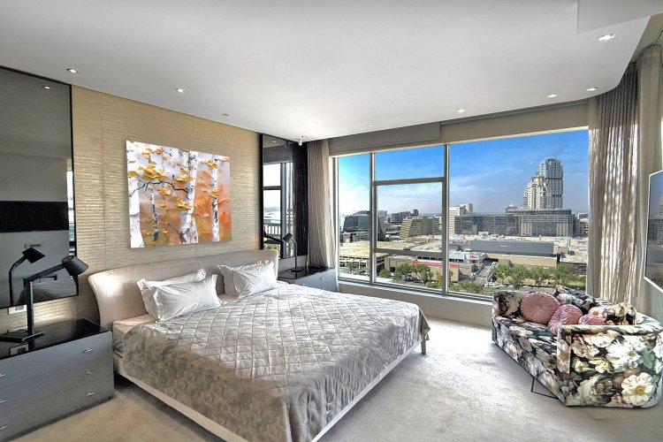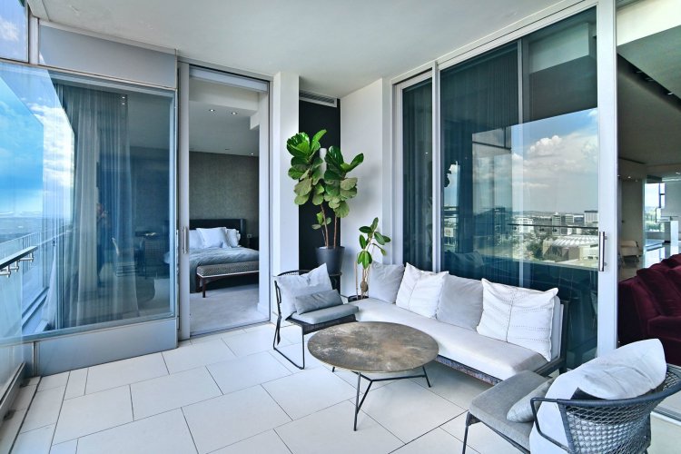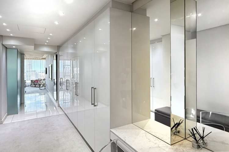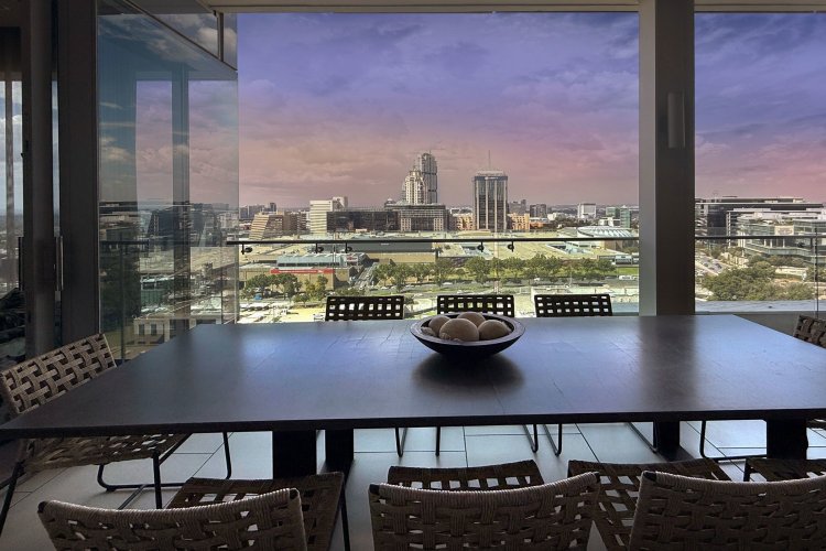 Finger print identification from the elevator which opens into the apartment - where one is greeted by volumes, elevated proportions, a synthesis of clean lines which integrate with windowscapes of glass, allowing for breath- taking vistas to become part of the interior spaces - every window, every door and patio allows for awe and wonder at the splendour of uninhibited views of sky, stars, sunsets, lights, and all encompassing spectacular views of Sandton's skyline.