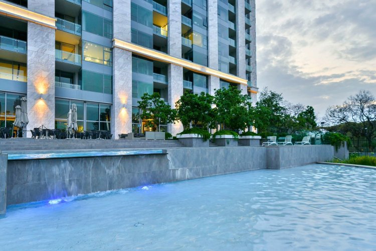 EMBASSY TOWERS FEATURES : 24-hour guarded entrance: Elegant lobby with water feature fountain that invites entry into the most excluvive apartment residence in Sandhurst.