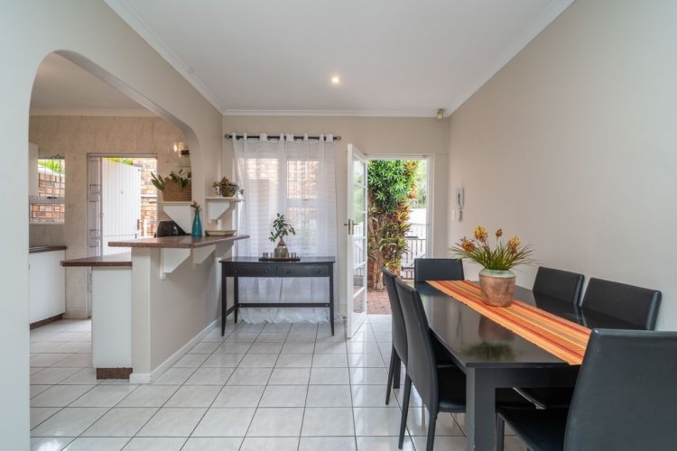 Immaculate 3 bed townhouse with open plan well-fitted kitchen with built-in stove. There are 2 stylish bathrooms. The home offers good flow from the lounge to a patio/entertainment area with wonderful views and a small private garden. The simplex also offers a double auto garage and a designated parking bay. Small dogs are allowed. This simplex is a great buy.
