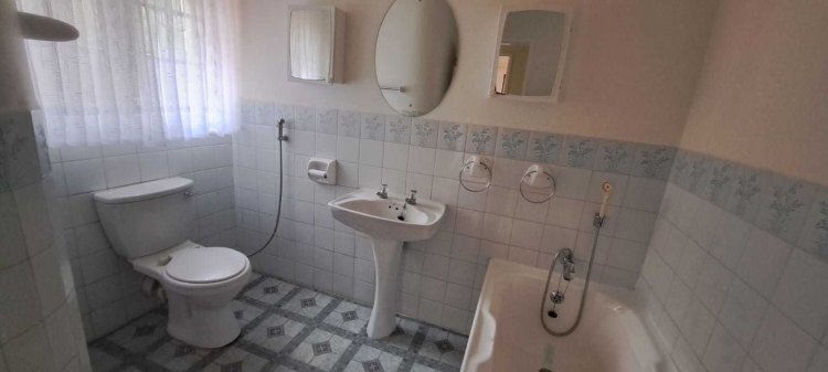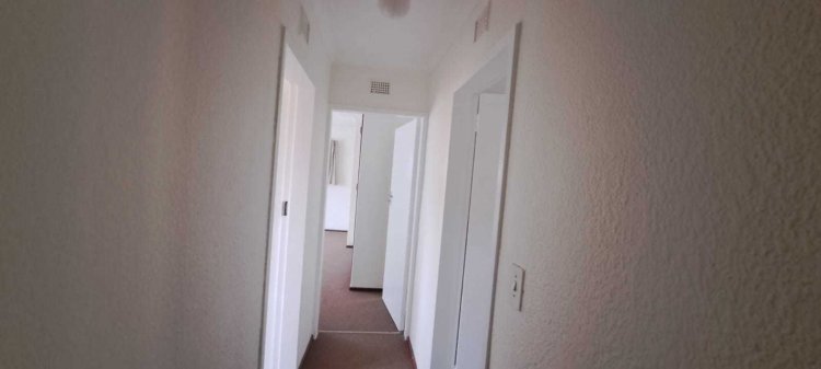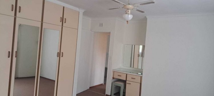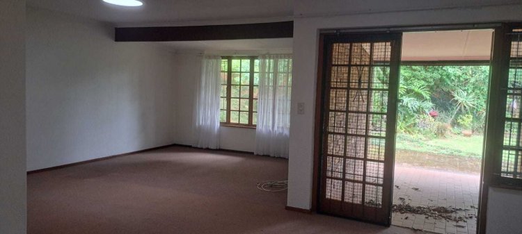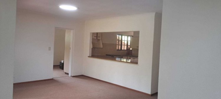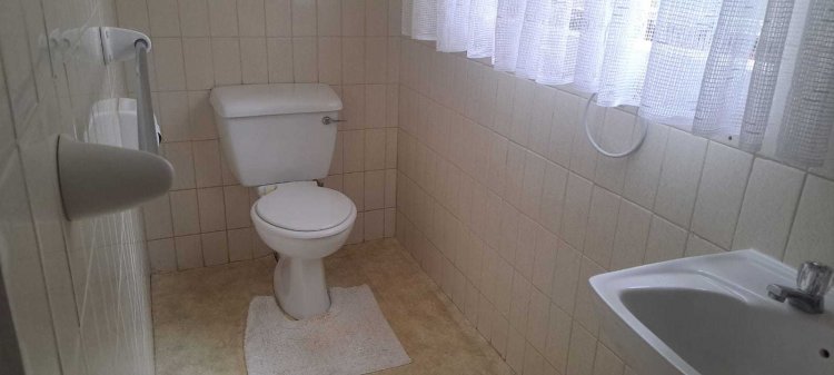 Property Features: - Spacious step less design – fully wheelchair-friendly - Three generous bedrooms, including a main en suite with shower and toilet, all with built in cupboards -Second bathroom with a shower and loo. This bathroom is tiled but could do with an upgrade. - Large open-plan living area with lounge and dining room. which opens by means of French doors onto a small front veranda, perfect for relaxing or entertaining and looks onto a pretty garden