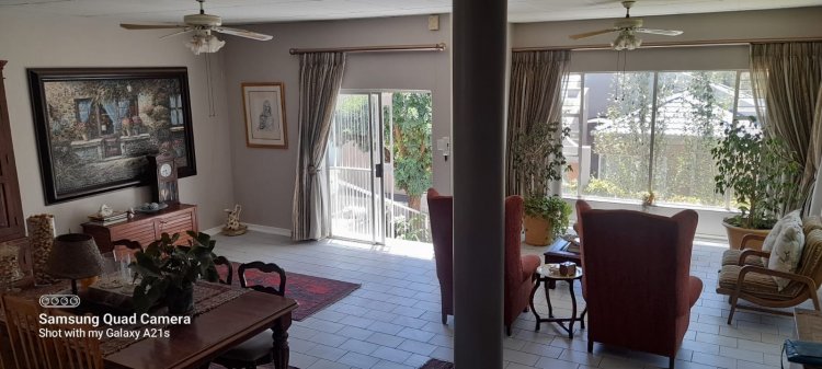 The property includes a functional study, ideal for a home office. The dining area is conveniently located next the the kitchen. The kitchen has been designed with functionality and aesthetics in mind. It features sleek countertops, ample cabinetry, and modern appliances. This kitchen is sure to meet all your needs. A dedicated scullery area adds to the convenience of the this home.