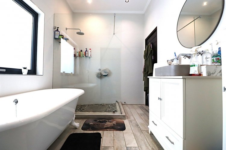 The gourmet kitchen with modern appliances flows seamlessly into the dining and living area, opening onto a private patio and garden — ideal for entertaining or relaxing. Each bedroom is en suite, offering ultimate comfort and privacy, while the guest cloakroom adds extra convenience.