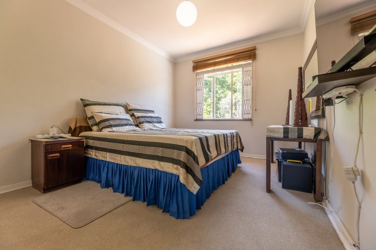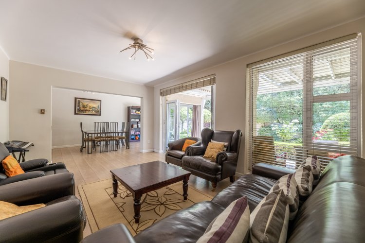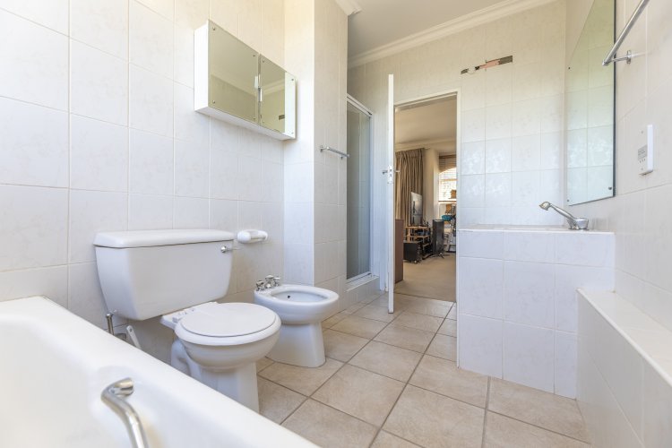 Upstairs, just beyond the guest cloakroom, you’ll find three spacious, carpeted bedrooms with built-in cupboards. The generous main bedroom boasts a full en-suite bathroom, while the remaining two bedrooms share a well-designed second bathroom. A linen cupboard adds practical storage.