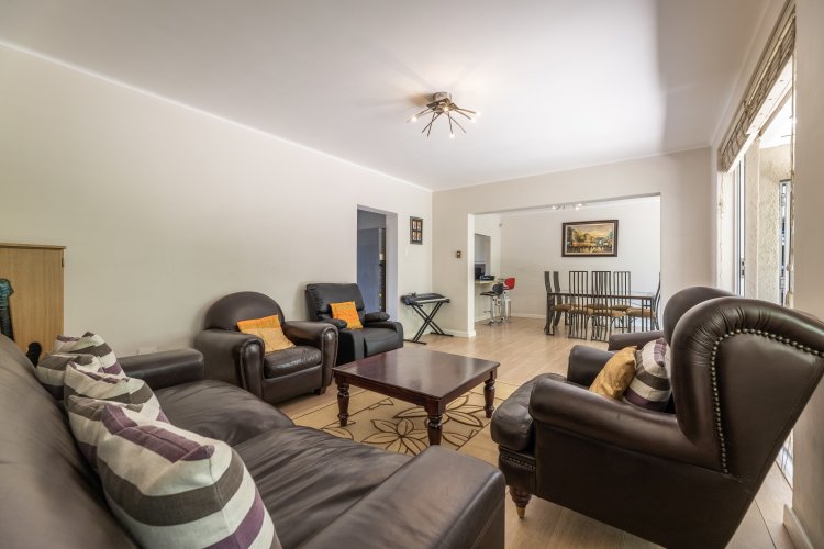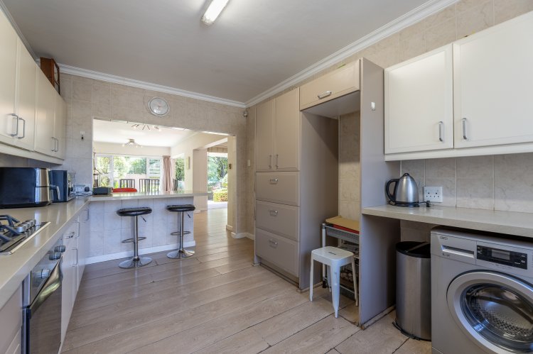 As you ascend the stairs, adjacent to the staff accommodation, you’re welcomed into a spacious and inviting layout. The main living level features two generous reception areas that flow seamlessly onto a large, sunny balcony. Beautiful laminated flooring runs throughout the open-plan lounge and dining areas, which adjoin a versatile TV room easily convertible into a study or home office.