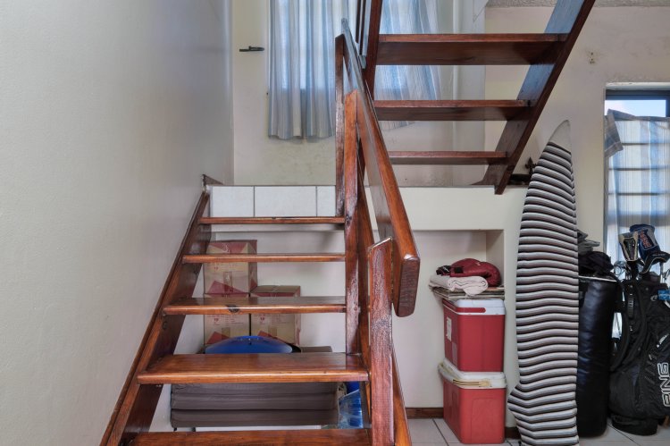 Secure north/west-facing duplex situated in a well-maintained White Mediterranean–style complex, overlooking beautifully landscaped gardens and a sparkling communal pool. Upstairs offers three bedrooms with built-in cupboards, two bathrooms main en-suite with shower and a second bathroom with bath. Linen cupboard. Downstairs features a flowing lounge and dining area opening onto a covered patio, a guest toilet, and a well-fitted open-plan kitchen with under-counter oven and hob. Additional features include an alarm system, trellis doors, prepaid electricity, borehole and water tank. Single garage plus additional visitors’ parking available. The complex is well managed, with the Chairman and Trustees residing on site. Currently tenanted at R9 500 per month, making this an ideal investment or future home. Owner relocating – all fair written offers will be submitted. Close to all forms of transport, The Beach, Education facilities, Entertainment hubs and shopping malls. Levy: R 2 342 (including water and sewage) Rates: R1 312 Dwel: 125 sqm including single garage. Call now for a private viewing. Viewing times late afternoon.