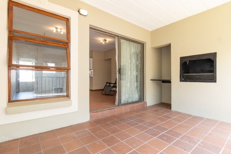 This apartment offers a contemporary open-plan living and dining area flowing into a modern kitchen with ample built-in cupboards. Sliding doors lead to a well-sized covered patio providing an excellent indoor–outdoor living experience in a relaxed social atmosphere with a built-in braai facility for the enjoyment of family and friends alike. Property features: · 3 bedrooms with built-in cupboards · 2 modern bathrooms, main bedroom with an en-suite for convenience · Open-plan living and dining area · Modern kitchen with ample cupboard and appliance space · Covered patio with braai facility · Secure complex with controlled access · Communal pool · Allocated parking