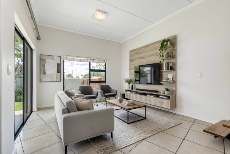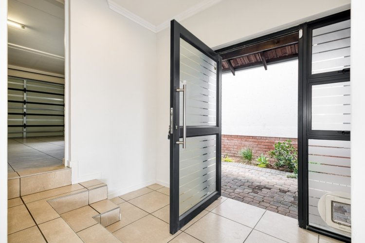 Stylish 3-Bedroom Duplex with High-End Finishes in Paulshof Step into modern elegance with this beautifully maintained 3-bedroom, 2.5-bathroom duplex, set within a quiet and secure estate in the heart of Paulshof. Designed with contemporary living in mind, this home is perfectly suited to professionals or families looking for comfort, sophistication, and peace of mind. The property prioritizes efficiency and ease, offering a gas hob, providing reduced monthly running costs. The modern kitchen boasts clean lines, quality cabinetry, generous work surfaces, and space to accommodate a double-door refrigerator. The open-plan layout flows effortlessly from the kitchen into the dining and living areas, creating a warm and welcoming atmosphere. Sliding doors lead out to a covered patio featuring a built-in braai, overlooking a private garden, ideal for relaxed entertaining or quiet evenings outdoors. Upstairs, a flexible landing area with a built-in study station offers the perfect work-from-home solution. The main bedroom is a calm sanctuary with a full en-suite bathroom finished to a high standard. Two well-sized additional bedrooms share a stylish family bathroom. Additional features include: Guest cloakroom on the ground floor, Double automated garage with direct access, Air conditioning in all bedrooms. Situated in the ever-popular “Garden Village of the North,” Paulshof offers easy access to major highways, shopping centres, restaurants, and leading schools including St Peter’s and Curro. This standout home delivers the ideal balance of luxury, sustainability, and everyday practicality—perfect for modern living in one of Johannesburg’s most desirable suburbs. Additional levy: R201 Arrange your private viewing today : this one won’t last long.