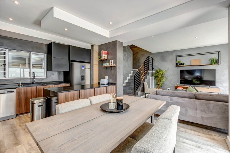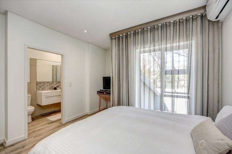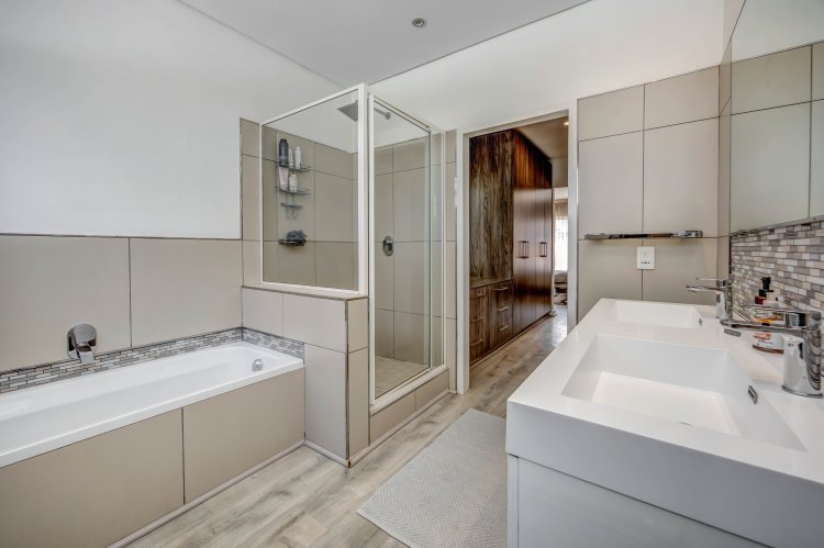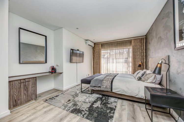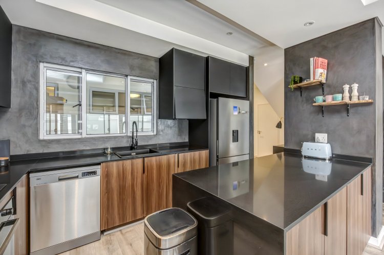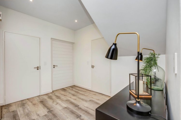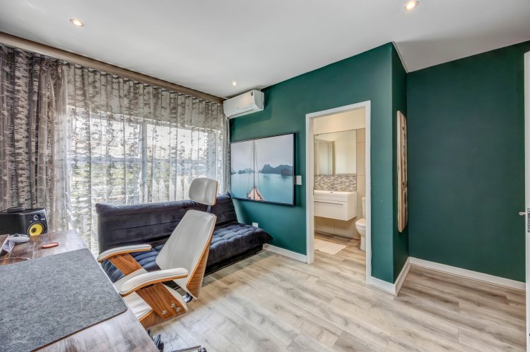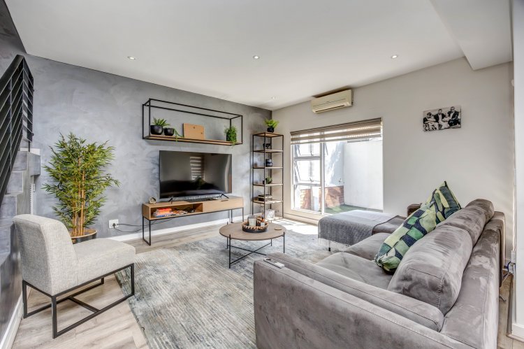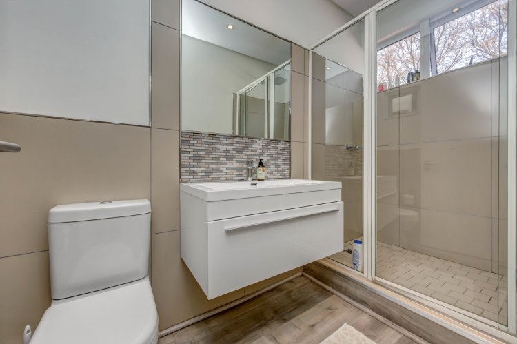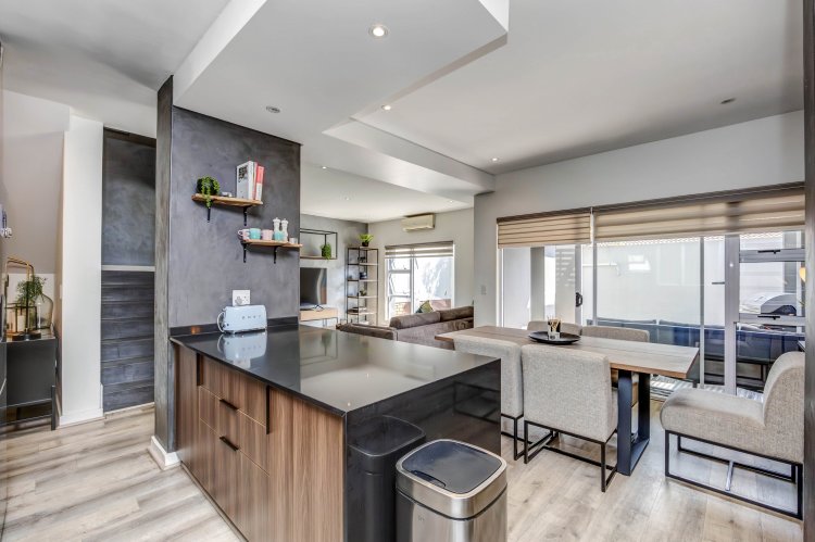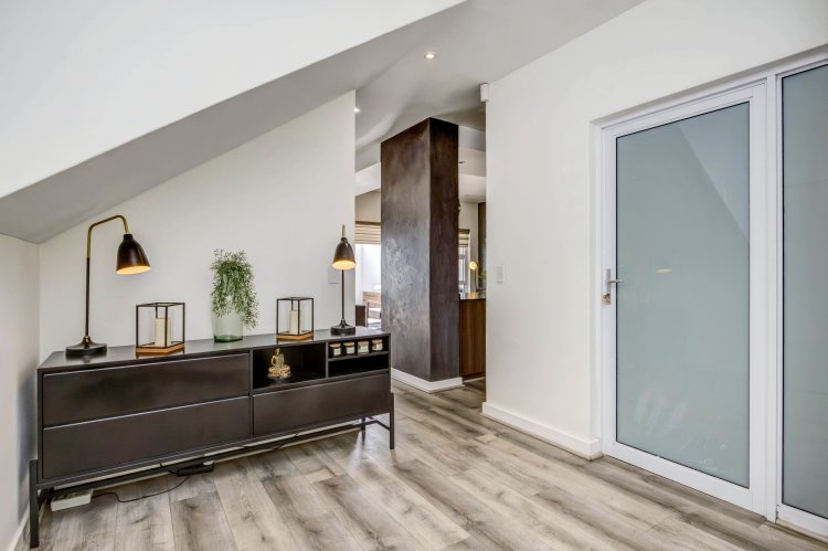 This modern executive duplex combines style and functionality, offering a double garage and domestic accommodation. The ground floor features a guest WC, spacious lounge, dining area, and a sleek modern kitchen. The open plan living space flows seamlessly onto a patio and a private, low-maintenance garden with artificial lawn. Upstairs, you’ll find three generously sized bedrooms, each with its own en-suite bathroom and fitted air-conditioner, ensuring comfort and convenience throughout the home.