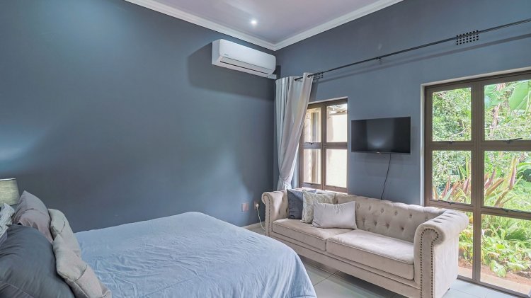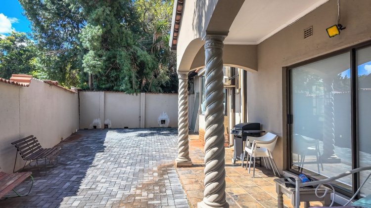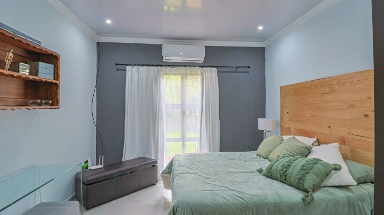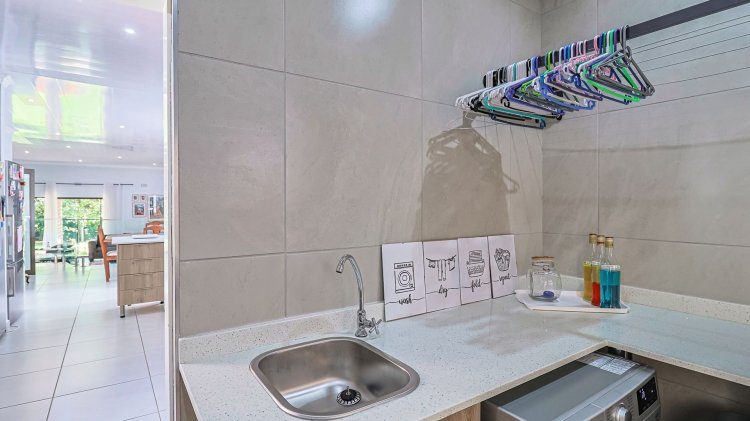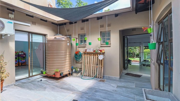 The complex is equipped with borehole water for gardening purposes, while the townhouse itself operates on municipal water.