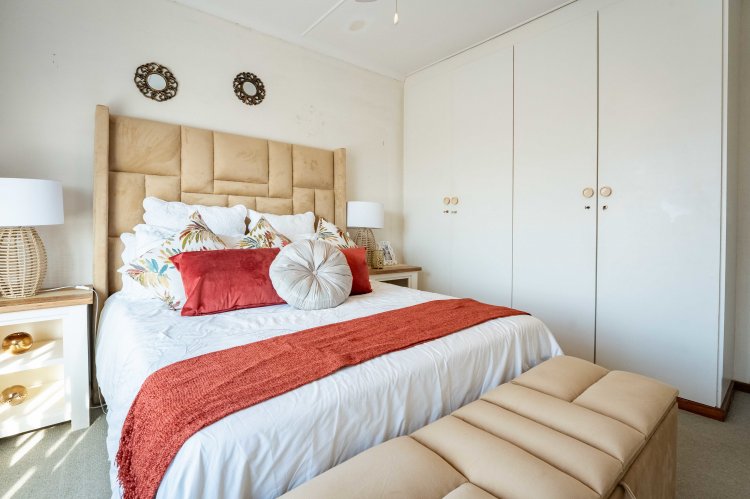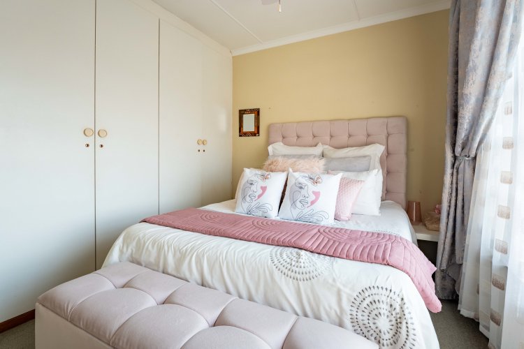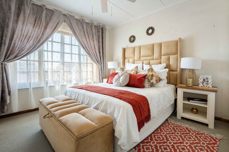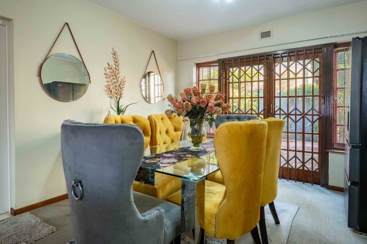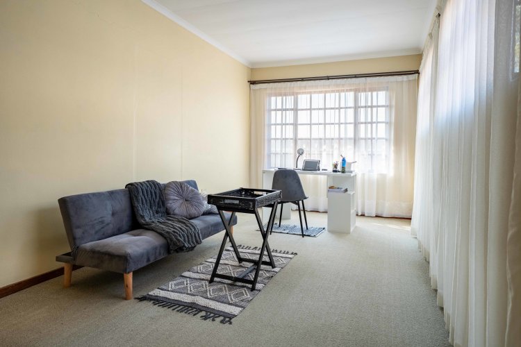 The ground floor boasts an open-plan living and dining area that flows effortlessly to a private backyard — ideal for entertaining or relaxing. The kitchen is well-appointed with built-in cupboards, offering ample storage and practicality. Upstairs, you’ll find three spacious bedrooms and two bathrooms, including a main en-suite for added privacy. A charming pyjama lounge off the main bedroom provides a versatile space — perfect for a study, reading nook, or home office.