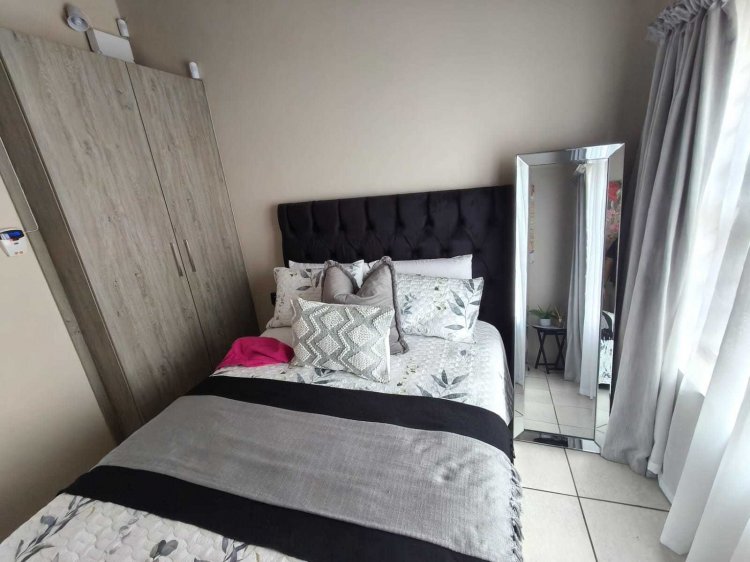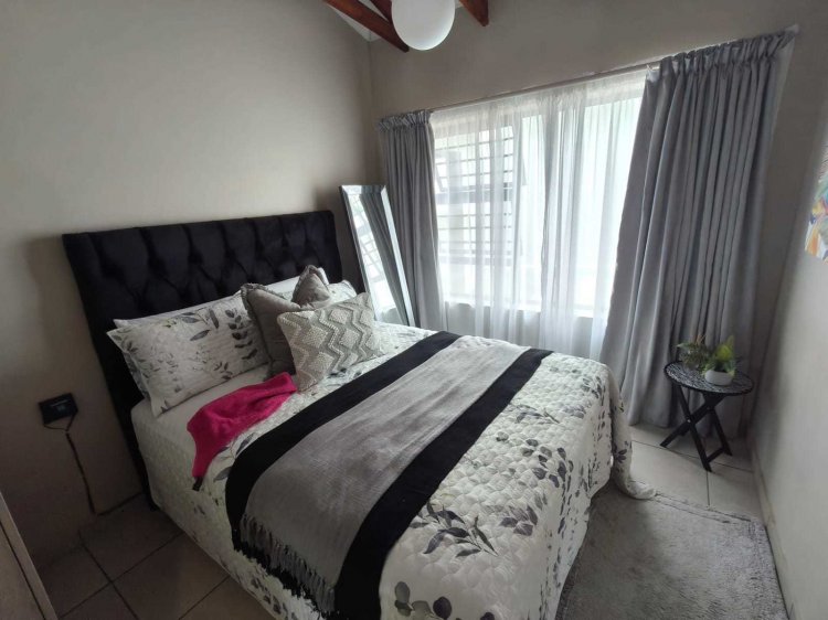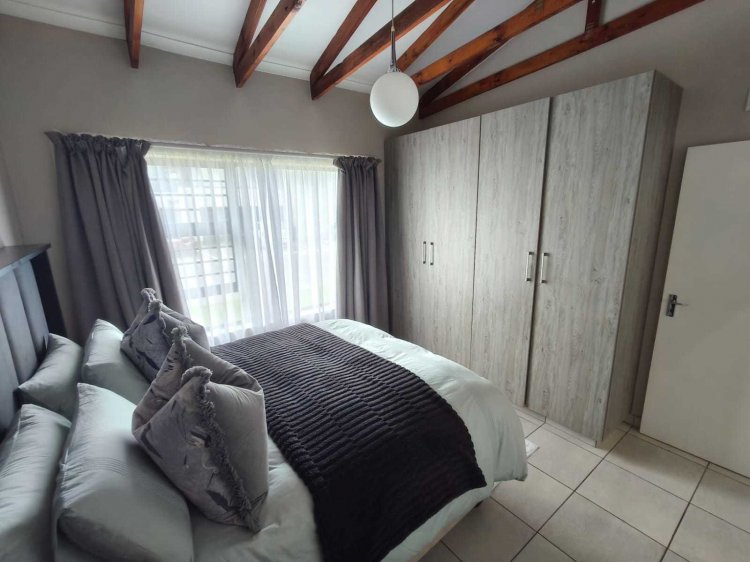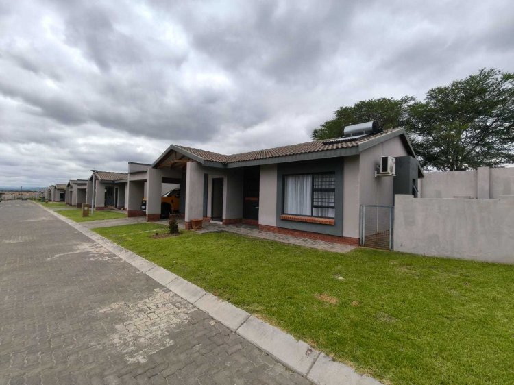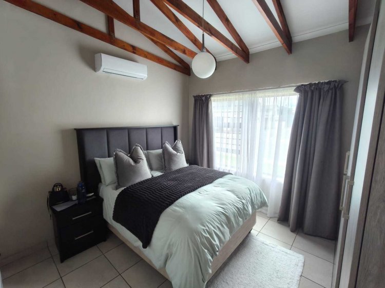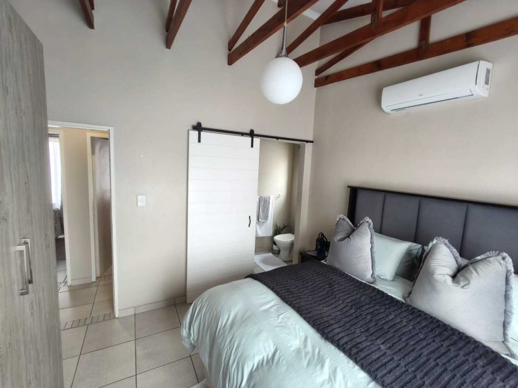 Welcome to this neat and well-kept townhouse in the popular Roan Ridge, Waterkloof AH. This home offers three comfortable bedrooms and two bathrooms, making it ideal for a small family or professionals. The main bedroom is fitted with an air conditioner for extra comfort. The open-plan kitchen and lounge create a warm, easy-flow living space, perfect for everyday living. The lounge also has an air conditioner, keeping the home cool and comfortable. Step outside to a lovely patio with a built-in braai, ideal for relaxing or entertaining friends and family. The unit offers a swimming pool where you can enjoy sunny days and unwind. The townhouse includes a single garage and a single carport for secure parking. A JoJo tank with a pressure pump ensures peace of mind with water supply. For added safety, the home is fitted with a burglar alarm and security cameras. This is a neat, move-in-ready home in a well-located and secure area, offering comfort, convenience, and easy living.
