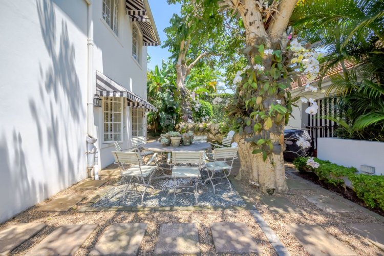 The garden is immaculately manicured, level, and private, offering a serene outdoor environment rarely found at this level.