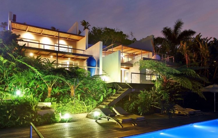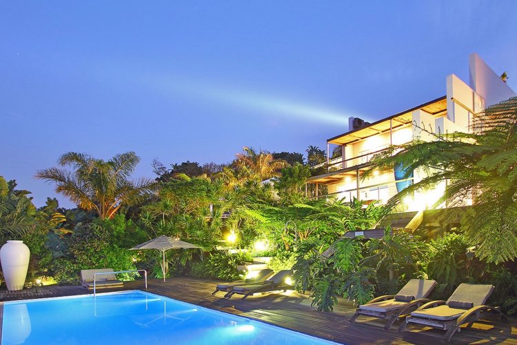 A house on a double stand in Trafalgar overlooking paradise or a world-renowned boutique hotel with breath taking Indian Ocean views. The choice is yours. Here the warm ocean drives its symphony as a lullaby. Pampered guests relax with the attention of professional staff. Take the reins of this award-winning business and keep collecting the accolades. It is fully liquor licensed and the wine cellar is Platinum awarded by Diners International. The European background and artistic touch of the owners is evident throughout. Clear-cut lines and driftwood meet international art. Each of the 4 airconditioned suites is a world on its own, and the Lodge is a masterpiece of design in exquisite shades of aquamarine. The spacious infinity pool set over the ocean illuminates at night. And the pathway through the indigenous flora at the bottom of the garden leads to miles of golden beaches waiting to be explored. Above it the open plan Frangipani Restaurant and Guido's Bar. The chef makes suggestions, the guests decide and enjoy. The Boutique Lodge is has three world class golf courses in close proximity, and well-known game lodges with the Big Five a few hours away. The Wild Coast Sun Casino and entertainment centre with the ever popular Water World is just 20 minutes away. Relax in paradise where the sub-tropical climate is friendly year-round and wild buck can still be seen on your doorstep. Contact me for more info on this once in a lifetime opportunity. A work of art.