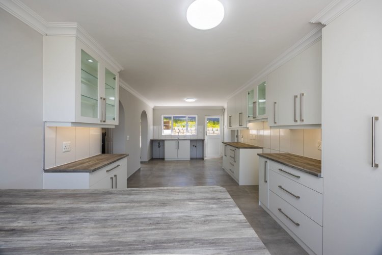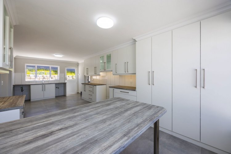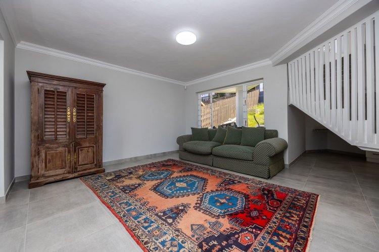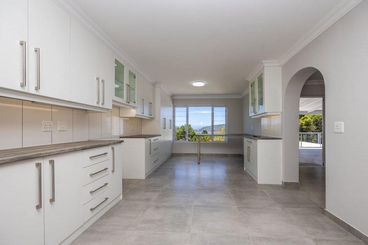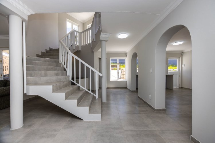 This tastefully renovated four-bedroom home is situated in the established suburb of Upper Old Place. The ground floor features an open-plan living area that leads onto a spacious covered patio, ideal for indoor-outdoor living and entertaining. The patio includes a built-in braai, while the newly fitted kitchen offers contemporary finishes, ample cupboard space, and a breakfast counter positioned to enjoy lagoon views.