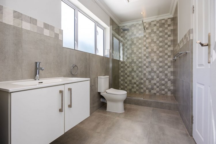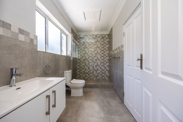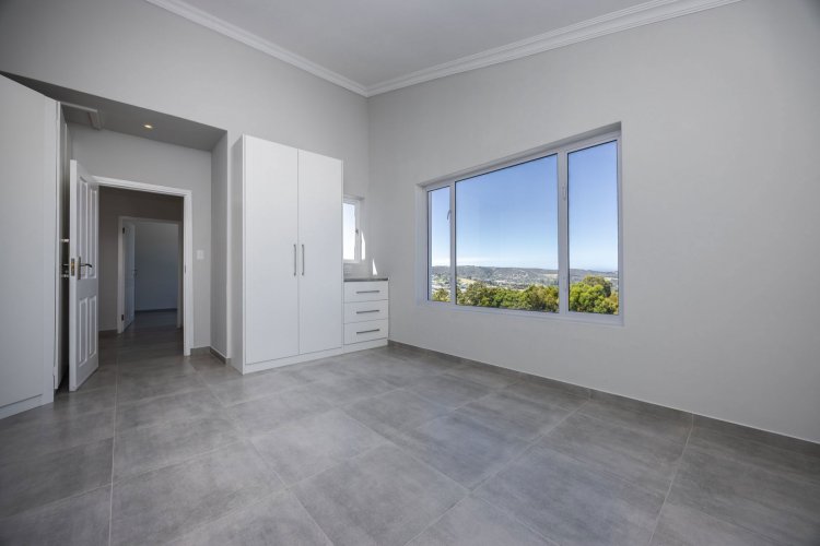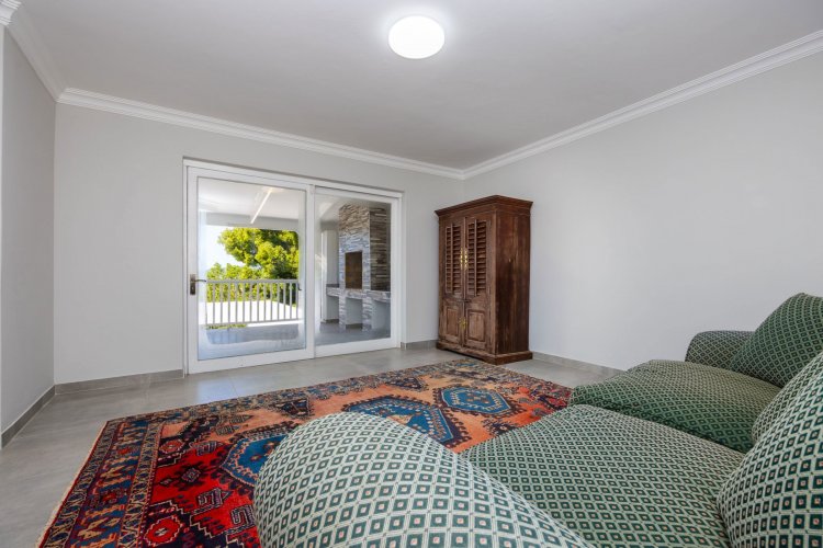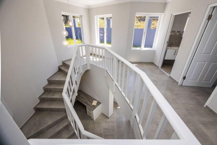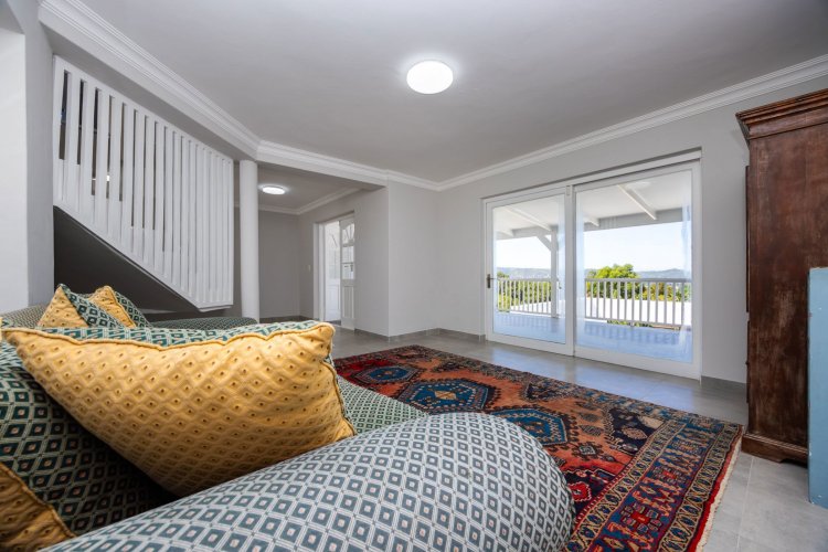The home offers four bedrooms in total, with one bedroom located on the ground floor. This space can be used as the main bedroom or closed off to function as a flatlet, ideal for visiting family or Airbnb use. Upstairs, the three bedrooms are complemented by two bathrooms and a small balcony from which to enjoy the view. A double garage is currently under construction and almost complete, adding the final touch to this versatile and move-in-ready family home.
