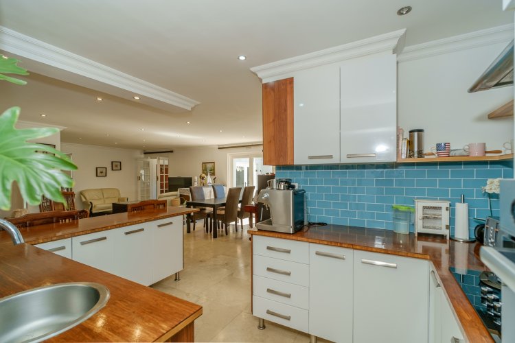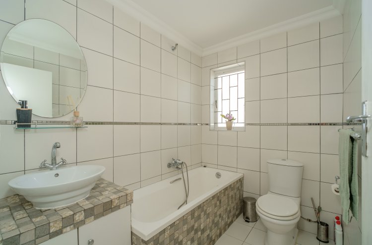 Exclusive Sole Mandate. This newly released home offers 4 Bedrooms and 3 bathrooms with a beautiful, expansive open plan lounge/dining room/ fitted kitchen (with gas hob, undercounter electric oven and extractor fan) all with travertine tiled floors, as well as spacious laundry/scullery, There is a family room with indoor braai and built in bar with doors leading outside to a sparkling fibre lined pool and the outside braai. Upstairs is a double bedroom with study and full en-suite bathroom. The main bedroom is an absolute delight together with its exquisite en-suite bathroom and plenty of built in cupboards as well as a walk-in closet. Both of the remaining bedrooms have built in cupboards and the use of the family bathroom. There are two garages. Indoor and outdoor alarms.