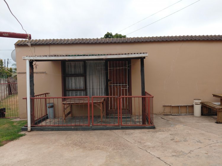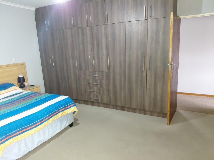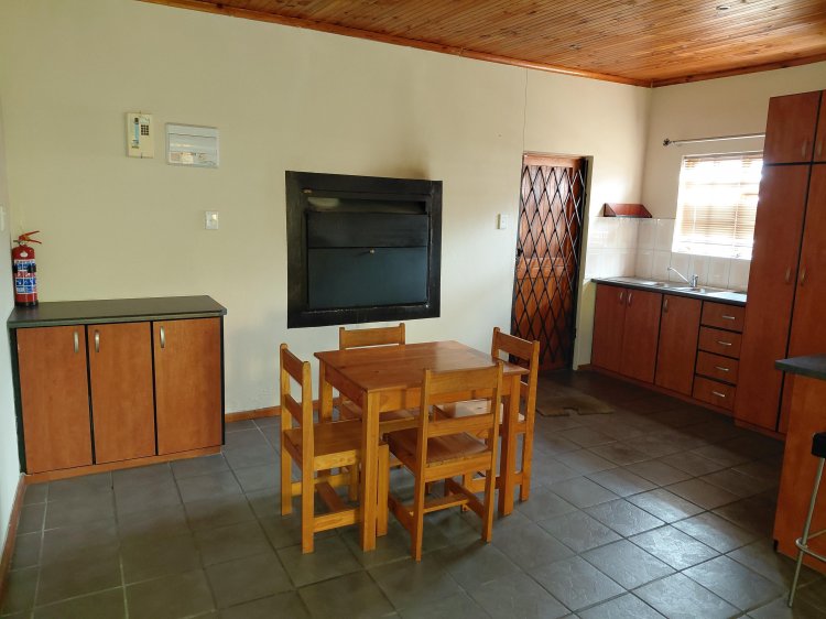 The main house features 4 bedrooms with built-in cupboards, including a main bedroom with air conditioning and an en-suite bathroom. There are 2 bathrooms, a spacious lounge, TV room, and dining area, as well as a large kitchen with ample cupboards.