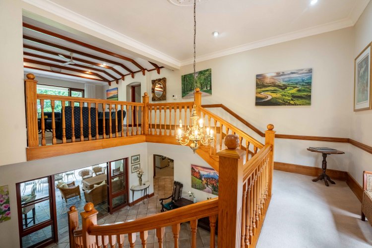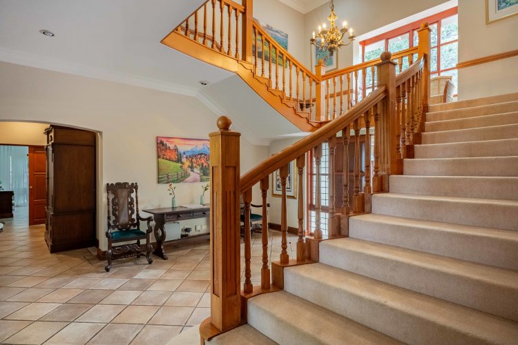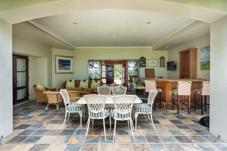 Set within the heart of Selborne Golf Estate, this remarkable 502 sqm residence is truly one of a kind. Built in 2001, it was the very first home constructed on the estate, giving it a special place in Selborne’s history and soul. Its most distinctive feature is the magnificent staircase, carefully replicated from the Selborne Hotel — a timeless architectural tribute that adds undeniable charm and character to this grand old lady. As you wind your way up the gently curving driveway, surrounded by natural coastal vegetation, a sense of peace and privacy sets in — a feeling that continues the moment you arrive.