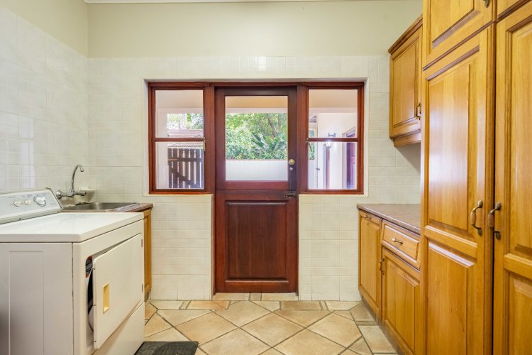 The kitchen is solid and welcoming, featuring granite countertops, ample cupboards, and a separate scullery, with easy access to the double garage — practical, functional, and ideal for family living.