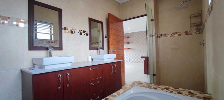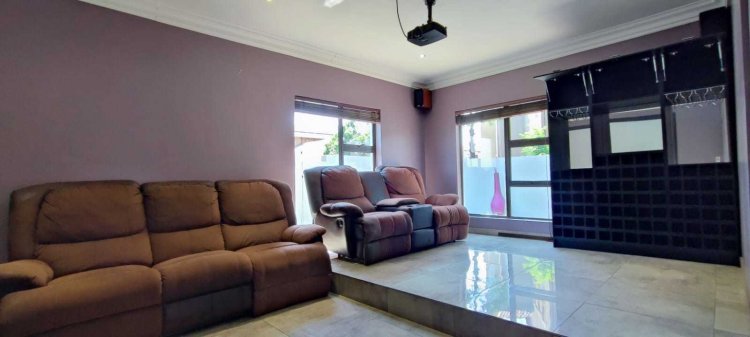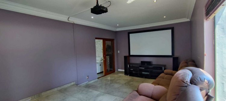 Property Features: 4 Bedrooms with ample cupboard space 2.5 Bathrooms (main en-suite with walk-in closet and private balcony) Modern kitchen with scullery and space for all appliances Separate lounge, dining room, and dedicated home theatre room Pajama lounge or home office upstairs Guest toilet downstairs Double garage with built-in storage and additional secure parking Entertainment patio overlooking a fenced, heated pool Neat, low-maintenance garden