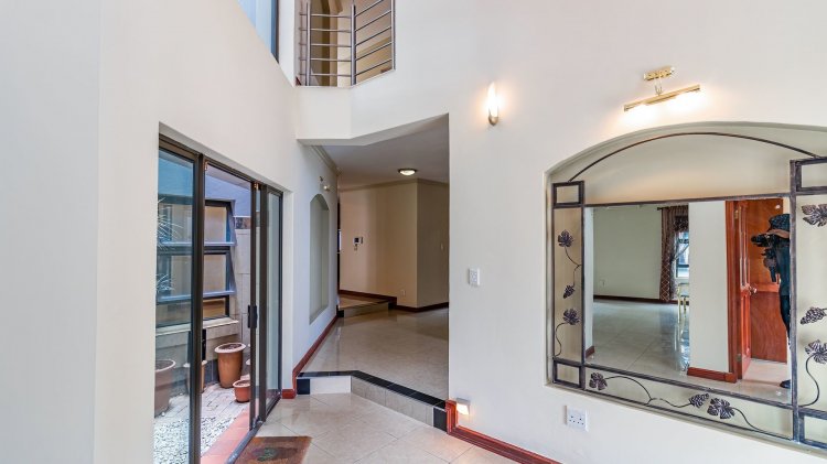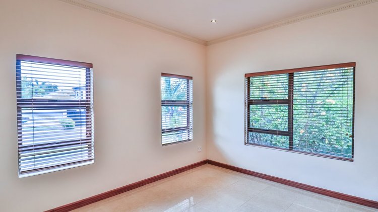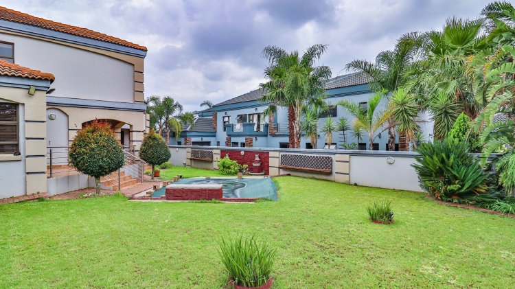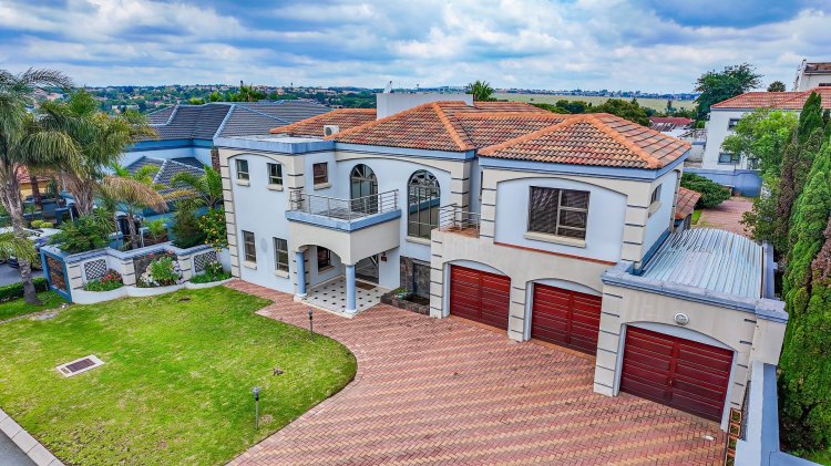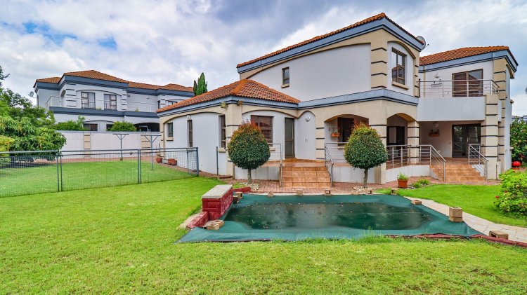 This spacious and beautifully constructed family home is located in the sought-after Savanna Hills Estate and offers an exceptional lifestyle for the discerning buyer. Perfectly positioned, the property boasts both front and back garden spaces, allowing for privacy and outdoor enjoyment. Upon entering, you are welcomed by a bright and inviting atrium filled with natural light. The home features a fully fitted office, three expansive living areas, an en-suite guest bedroom, a guest loo, and a large, well-appointed kitchen complete with a scullery. The living areas flow seamlessly onto a covered patio overlooking a landscaped garden and sparkling swimming pool. An enclosed patio off the kitchen provides an ideal everyday living space or a secure area for appliances and additional storage. Upstairs, the home offers three generously sized en-suite bedrooms, all fully tiled ,fitted with aircons and ample cupboard space. The luxurious main bedroom is exceptionally spacious and includes a private pyjama lounge. A fitted upstairs study, easily convertible into a fourth bedroom, adds further versatility. A large balcony provides the perfect spot to relax and enjoy fresh air. Additional features include double automated garages with extra built-in storage cupboards, an enclosed Hollywood-style carport offering ample additional parking, and a separate tool shed. Savanna Hills Estate offers excellent security and lifestyle amenities, and is conveniently located close to Blue Hills Shopping Centre, major highway access, schools, crèches, medical facilities, and more..