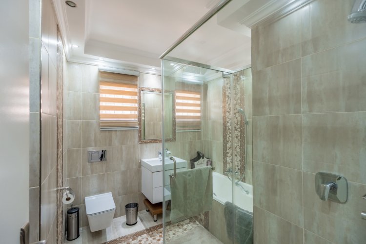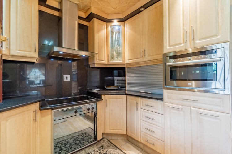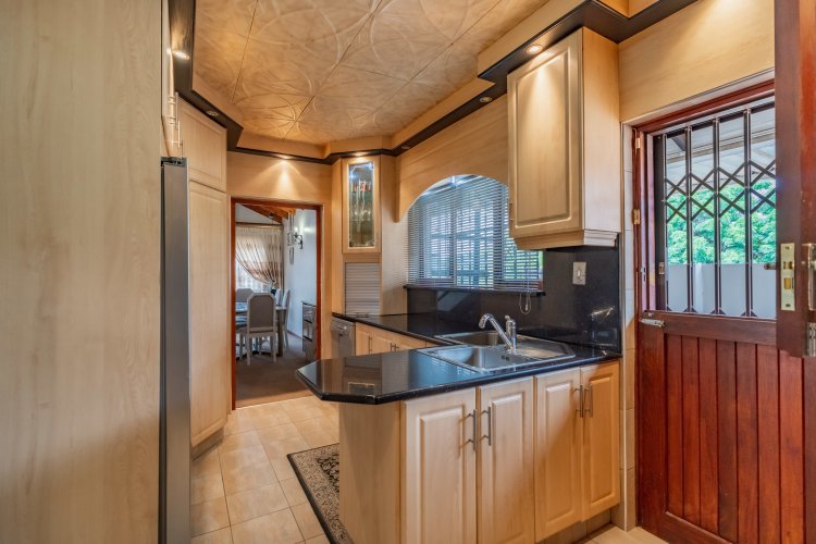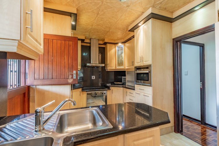 The home boasts four spacious bedrooms, all fully tiled with elegant parquet flooring and fitted with ceiling fans. The main bedroom is a private retreat, complete with an ensuite bathroom and air conditioning for year-round comfort. The modern, well-appointed kitchen features granite countertops, a gas stove hob, and a convection microwave, perfectly suited for both everyday living and entertaining.