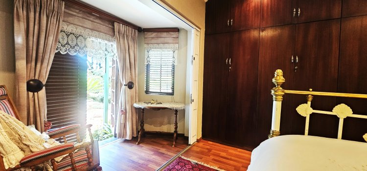 Additional accommodation includes servants’ quarters with an en-suite bathroom and built-in cupboards, which can also be used as a comfortable guest suite.