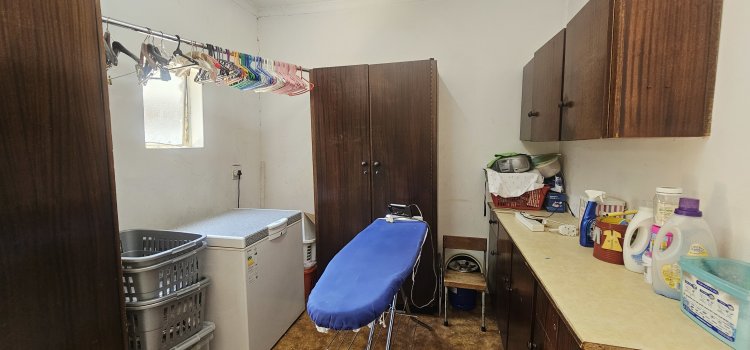 The well-appointed kitchen features granite countertops and a premium Smeg stove with a 6-burner gas hob, ideal for the home chef. This is complemented by a large scullery with ample cupboard space, a separate laundry with room for extra appliances, and a convenient storage room for camping gear or extras.