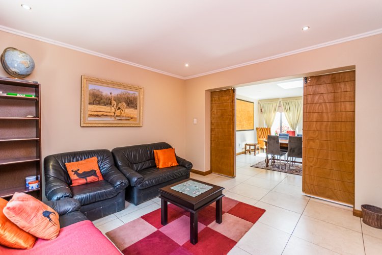 Exclusively presented by Harcourts Maritz This spacious 4-bedroom family home is ready to welcome its new owners to a lifestyle of comfort and security. The extra-large main bedroom features an en-suite bathroom, ample cupboard space, and access to a private balcony — the ideal retreat after a long day. Two additional bedrooms share a full bathroom, each with their own balcony, while the guest bedroom includes its own private bathroom. The upper level also offers a study, a closed living area, and an open pyjama lounge — perfect for work, relaxation, or family time. Downstairs, the generous open-plan living areas flow into a modern kitchen with a gas stove, plenty of cupboard space, and separate scullery and laundry areas. A guest toilet adds convenience for visitors. The covered entertainment area with built-in braai opens onto a sparkling pool and cozy, low-maintenance garden. A boma area at the back of the garden creates a warm spot for evening gatherings. Low maintenance garden. Additional features include: Two automated garages Extra-large automated garage for caravan or trailer Solar system Two water tanks. Ideally located near the estate clubhouse, this property offers an exceptional lifestyle. Enjoy 24-hour security, neat communal gardens, a gym, and a squash court — all within a prestigious estate setting.