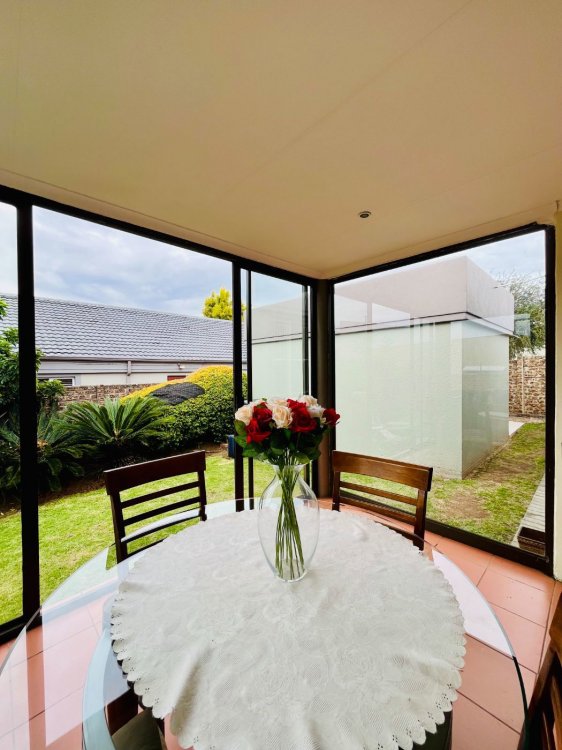 Experience secure, contemporary living in this rare gem — a full-title 3-bedroom home nestled in an exclusive Barbeque Downs estate. Enjoy seamless indoor-outdoor flow with open-plan living areas leading to a sunny Four Seasons room that opens onto a private wrap-around garden — perfect for entertaining year-round.