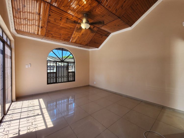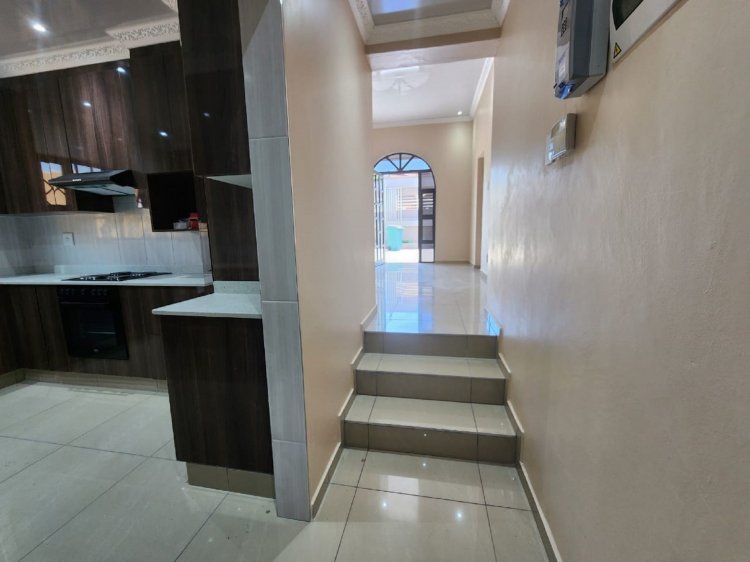 This property features four spacious bedrooms, all fitted with built-in cupboards, and two well-appointed bathrooms designed for convenience and functionality. The open-plan lounge and dining area create a warm and inviting atmosphere, perfect for family living and entertaining guests.