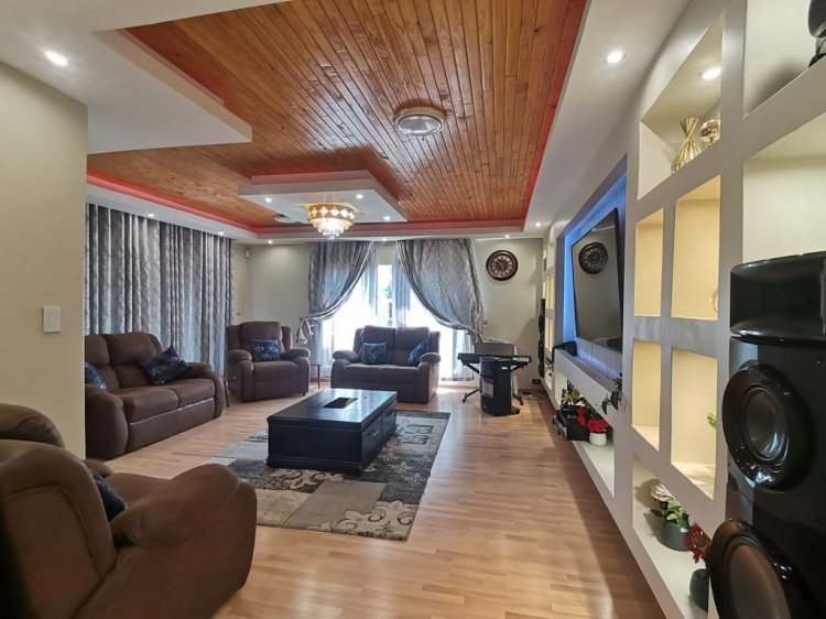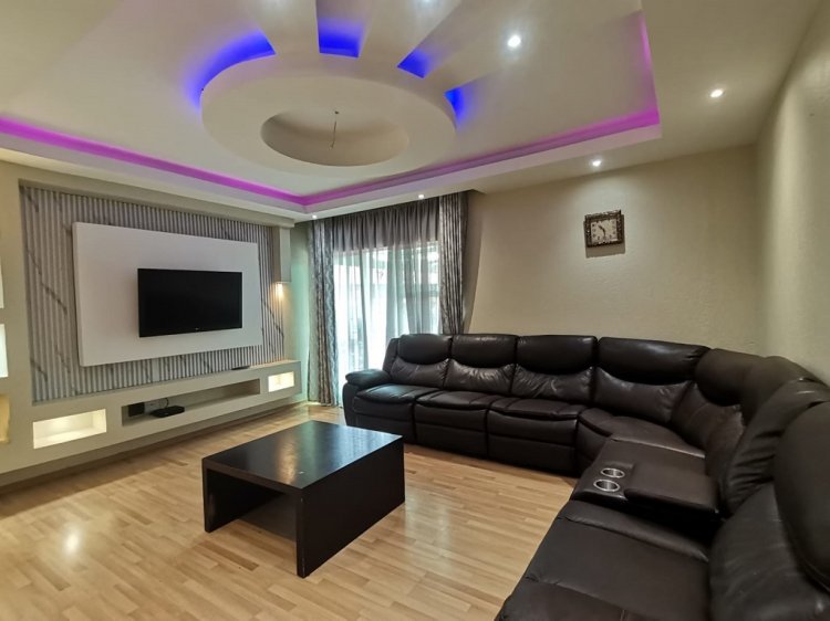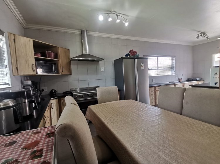 Step into this spacious and exquisite residence that promises comfort, convenience, and space - Be welcomed by the spacious entrance hall leading to the open plan living area, main lounge featuring modern ceilings, and large light fittings that exude style, a spacious TV living room family for relaxation, and dining area and leading to the kitchen overlooking the massive well maintained garden with a swimming pool. The very spacious and beautifully styled kitchen boasts ample cupboard space, counter space and is well sized as well.
