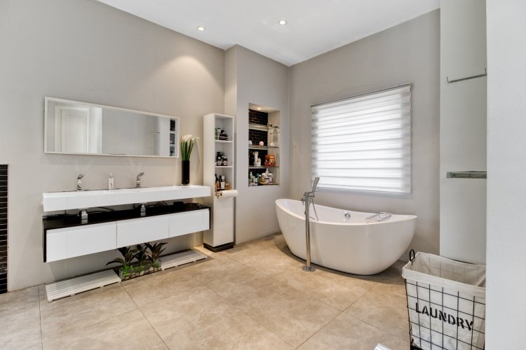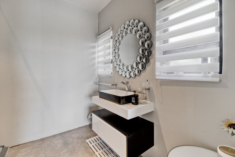 This home boasts four bedrooms in total. The first, located downstairs, includes an en suite bathroom and an additional guest bathroom. Upstairs, you'll find two spacious bedrooms that share a bathroom. However, the true gem of this property is the main bedroom. It offers a spacious lounge area, enormous walk-in closets, and a luxurious en suite bathroom reminiscent of a high-end hotel. Step onto the private balcony to enjoy heavenly sunsets and tranquil evening relaxation.