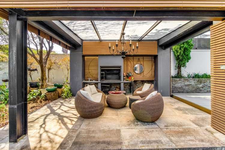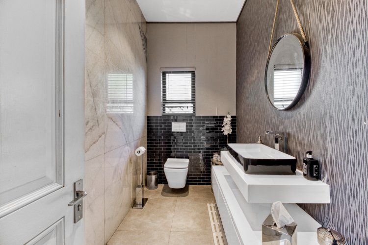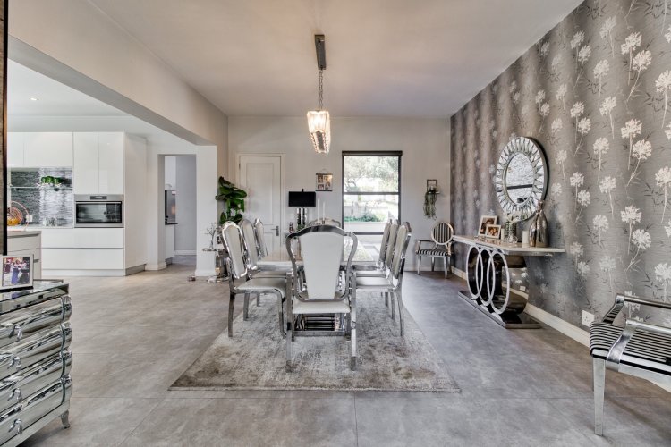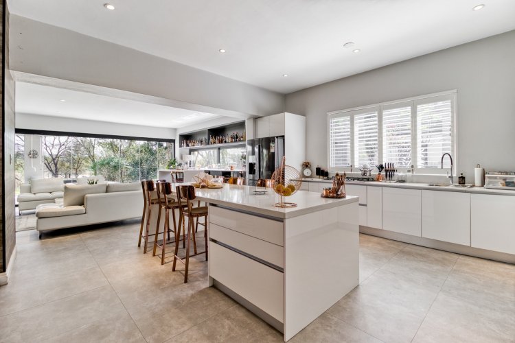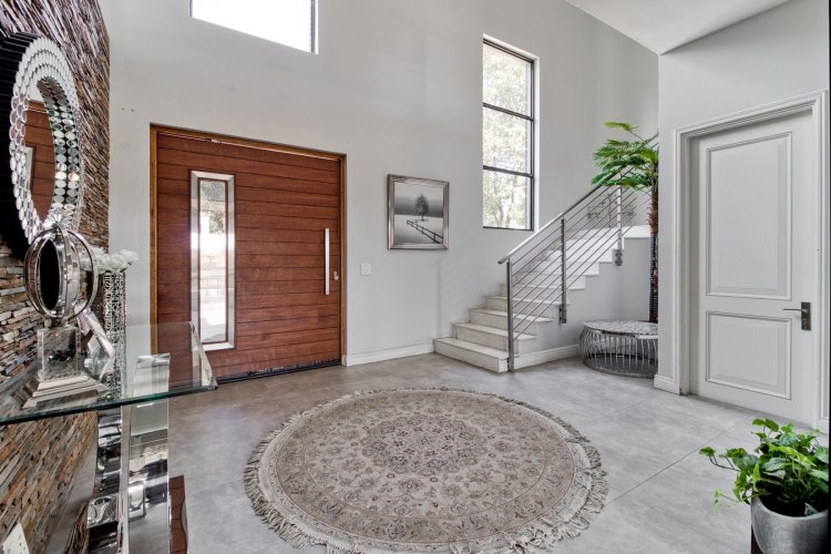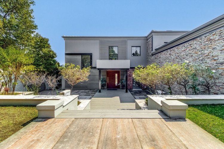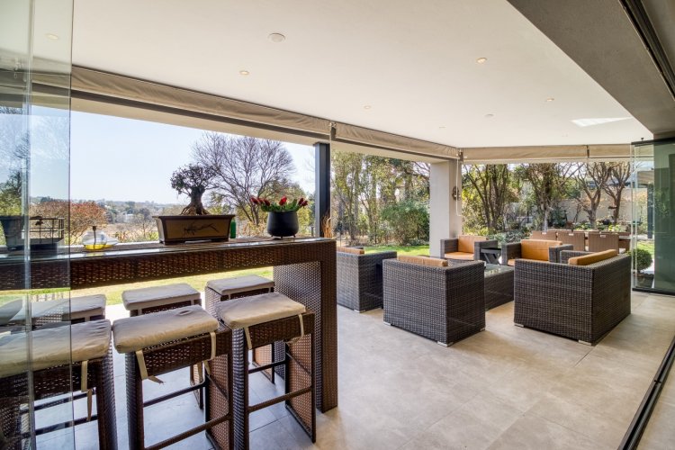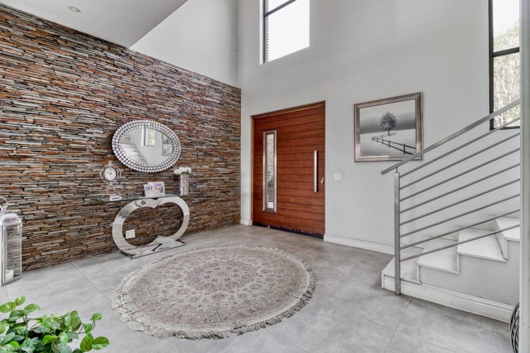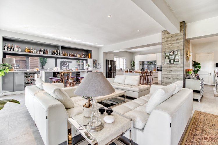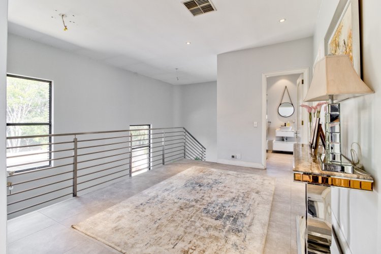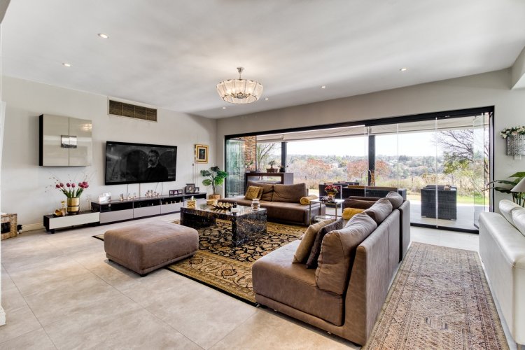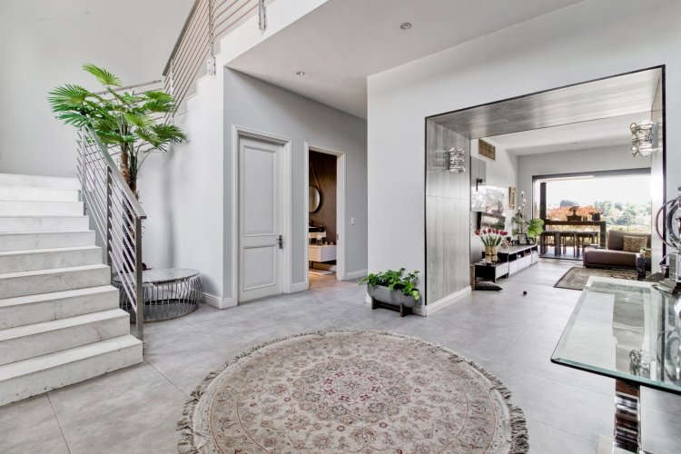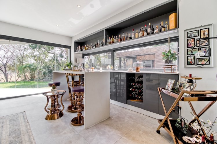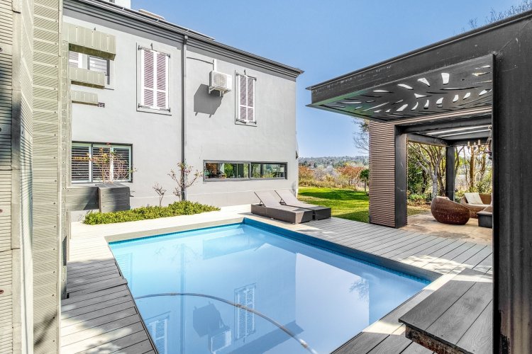 This contemporary residence is ideally situated in the heart of Dainfern, offering breathtaking views of the adjacent river and golf course. As you step into the double-volume space, the stunning scenery unfolds through the expansive glass stacking doors, providing an unobstructed vista of the fairway.