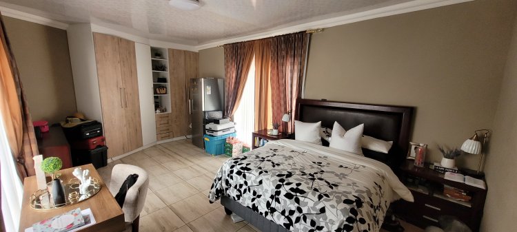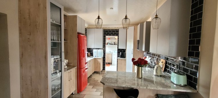 Offering both convenience and exclusivity in one of Middelburg’s most sought-after suburbs, this home is a statement in refined design. Thoughtfully curated interiors create an atmosphere that is both striking and inviting. Expansive open-plan spaces flow seamlessly from one to the next, while abundant natural light pours through oversized glass panels, framing serene views of the tidy garden and sparkling pool.