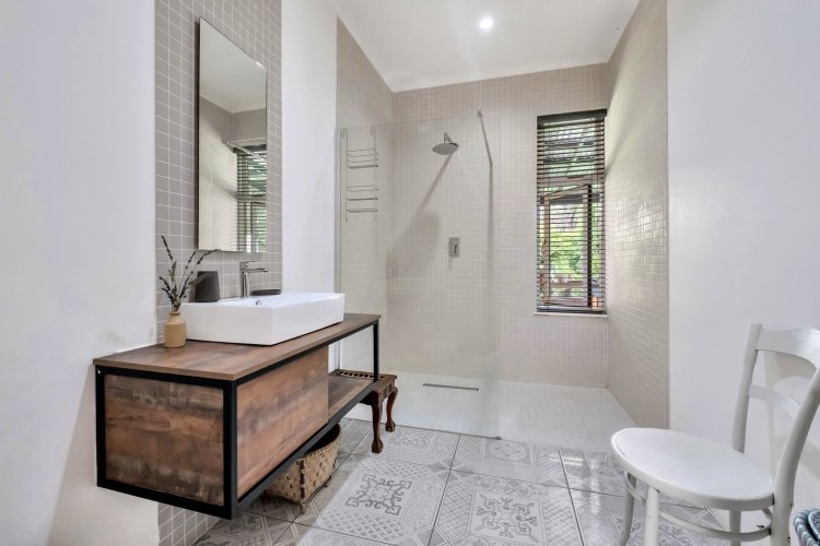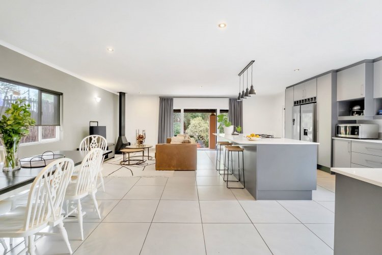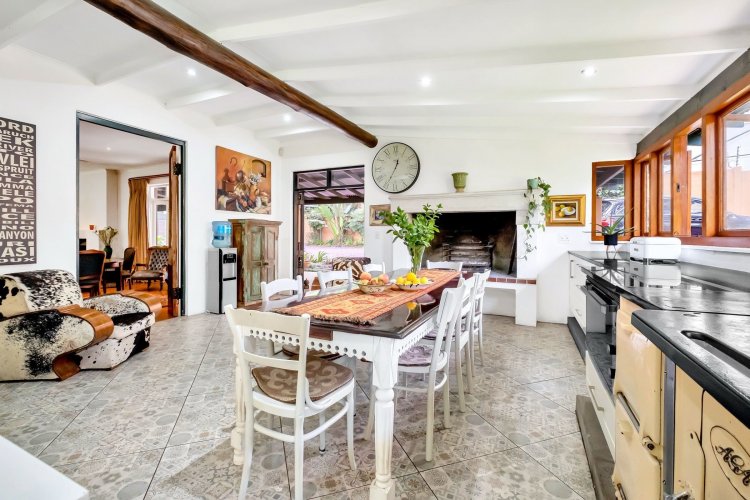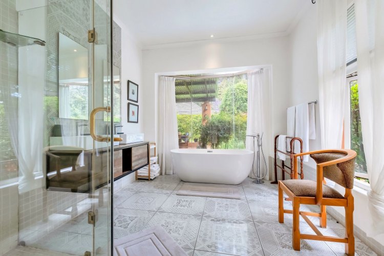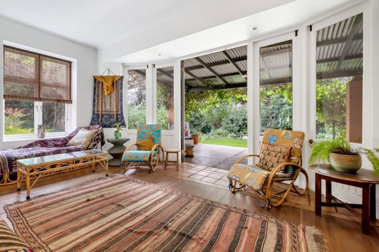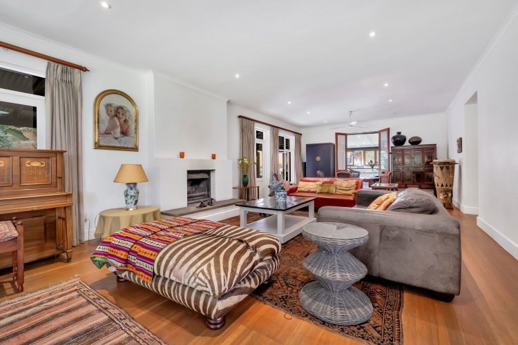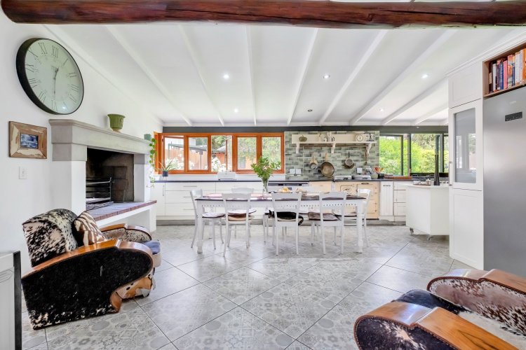 MAIN HOUSE A beautiful wrap-around verandah keeps the farmhouse cool in the long summer months, a natural beauty in a calm and tranquil setting. Family and friends mingle in the comfort of the lounge spaces with French doors opening onto the verandah. Enjoy the idyllic lush garden, read a book under the trees or enjoy an afternoon dip in the swimming pool. Everyone gathers in the generous country kitchen around the crackling fire while delicious cooking aromas waft through the air. Sit down to alfresco dinners, with drinks from the wine cellar, while overlooking the pool. Invite friends over for home-made pizza or braai under the trees. Share special times and family occasions with loved ones. Multi-level comfortable bedrooms and luxury bathrooms; two (or three) upstairs bedrooms (includes a sumptuous main bedroom with luxury ensuite bathroom, dressing room and a second bedroom plus separate bathroom. Two basement bedrooms that share a bathroom plus a lounge, kitchenette and bathroom (perfect as a private teenage pad or guest accommodation with own entrance).