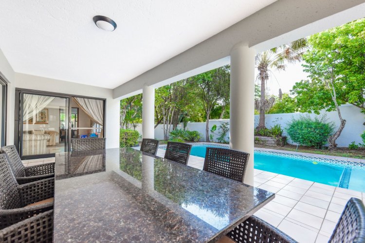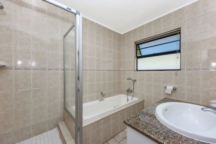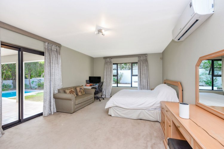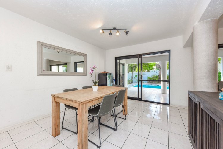 There are four generous bedrooms,three of which are air-conditioned and two full bathrooms. The main bedroom is ensuite and has a walk in closet and a sliding door that opens to the garden and pool.