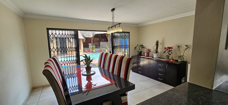 This home boasts 4 bedrooms with built in cupboards and 3 bathrooms making it convenient and perfect for the big family. There is also a study for work from home/study. The garden is well sized with a large lapa with a built in braai overlooking the pool perfect for summer enjoyment and relaxation with family and friends.