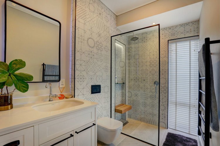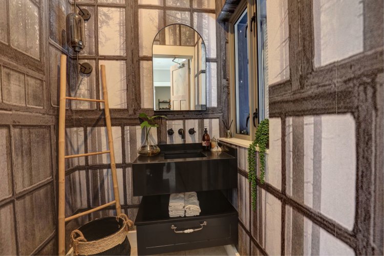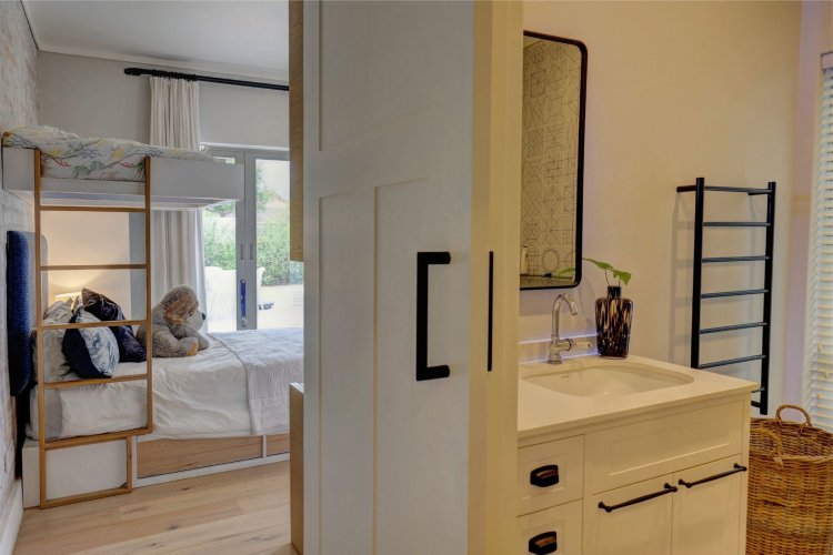 Guest bedroom, ensuite with sliding doors into a private courtyard.