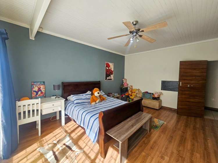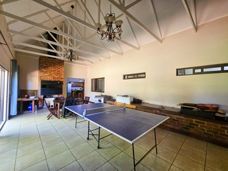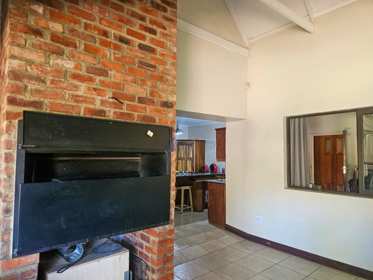 Entertaining is a dream here, with a dedicated entertainment area fitted with a built-in braai. Large sliding doors seamlessly connect this space to the lush garden, creating the perfect indoor-outdoor flow for family celebrations or relaxed evenings.