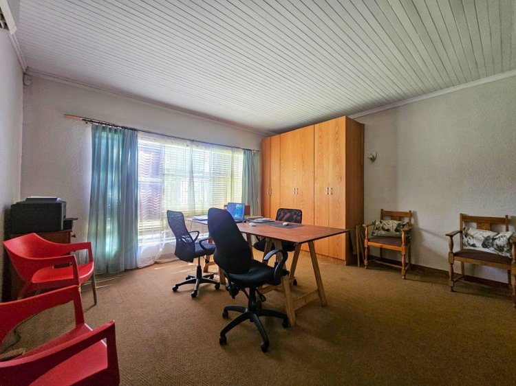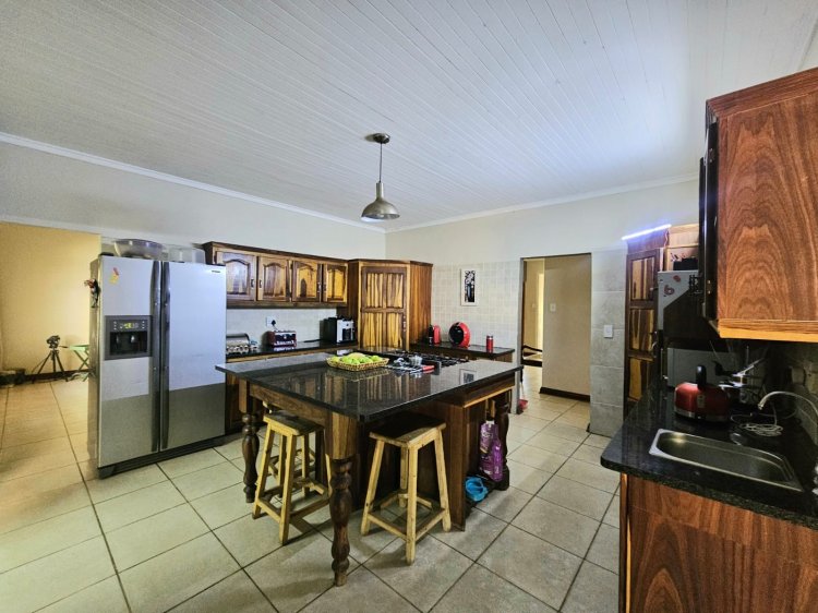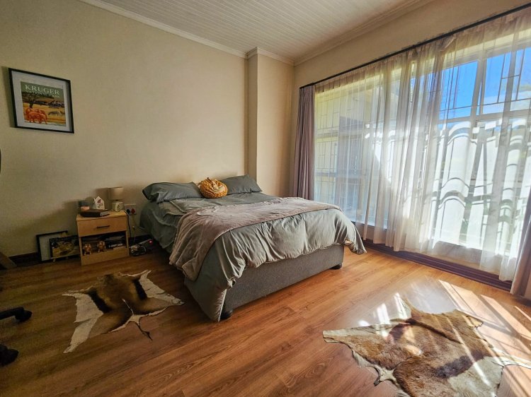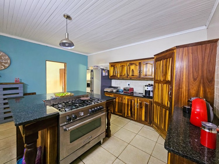 A private entrance with a secured front garden warmly welcomes you into the home, setting the tone for both privacy and charm. Inside, you’ll find a spacious open plan living and dining area, complete with a cozy fireplace that creates the perfect space for family gatherings. The heart of the home is the modern kitchen, featuring a stylish center island, gas stove, granite countertops, and ample cupboard space. A separate scullery and laundry area ensure practicality without compromising on elegance.